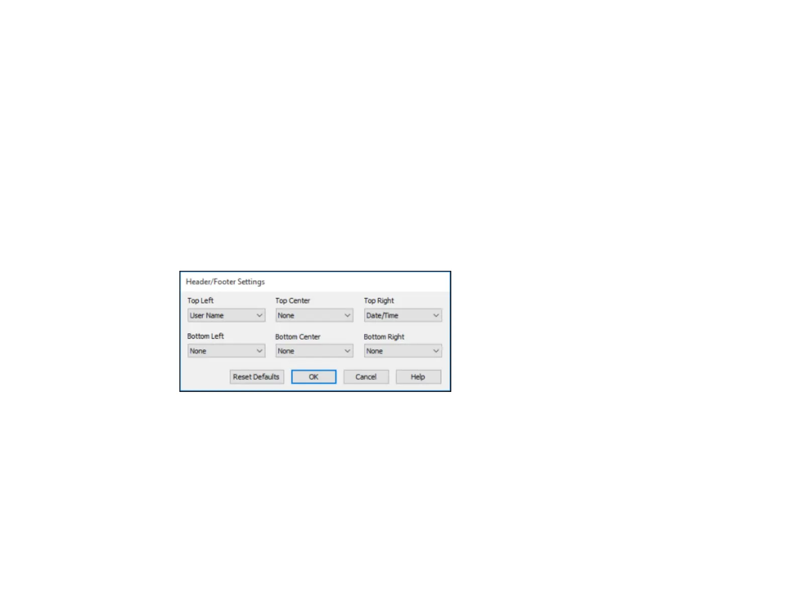 You can select any of the Header/Footer Settings options to add headers or footers when you print. The
