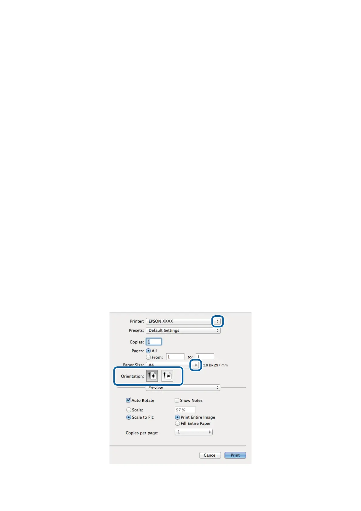 ❏ Orientation: Select the orientation you set in the application.