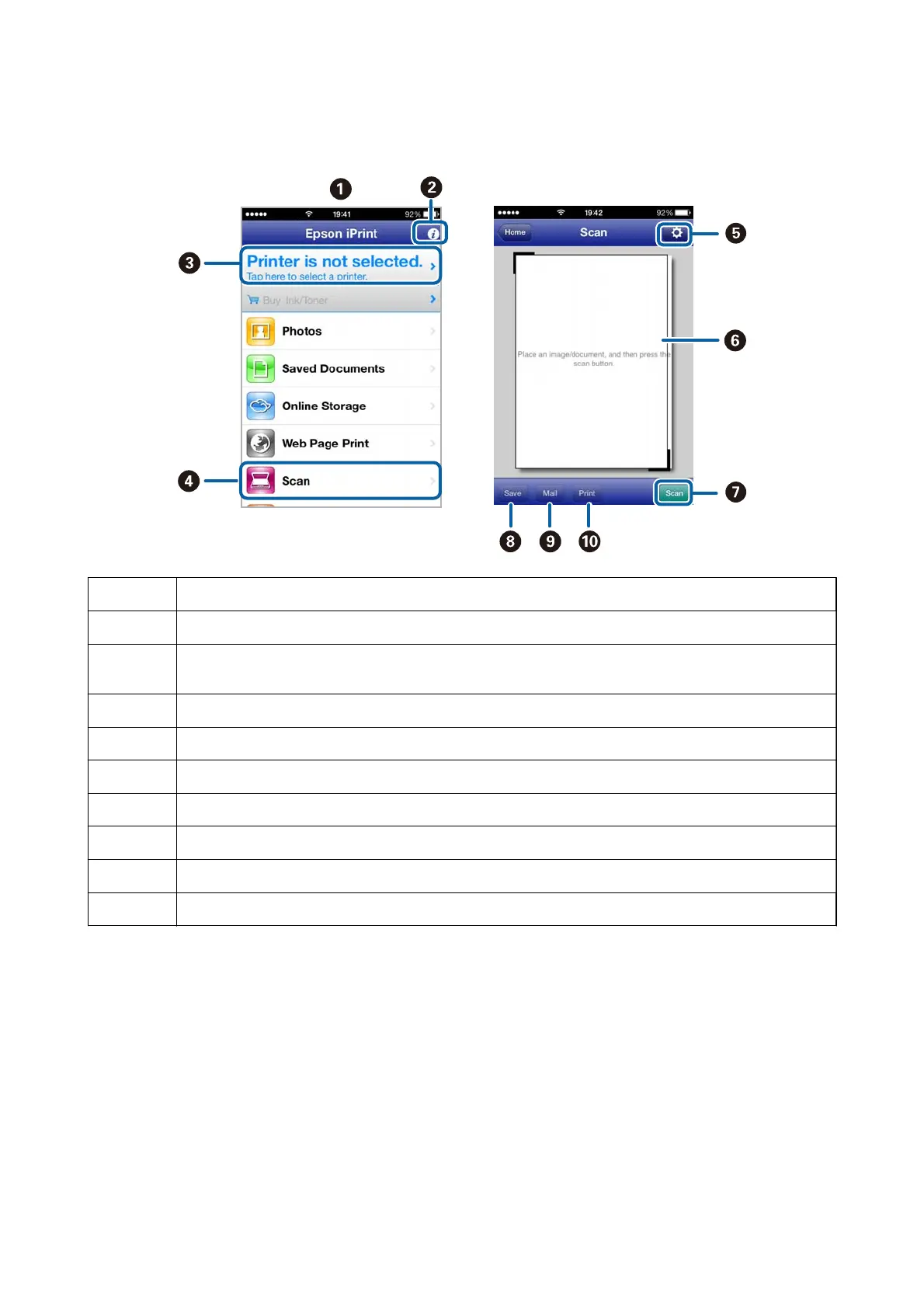 Displays the screen where you can save scanned data to a smart device or Cloud services.