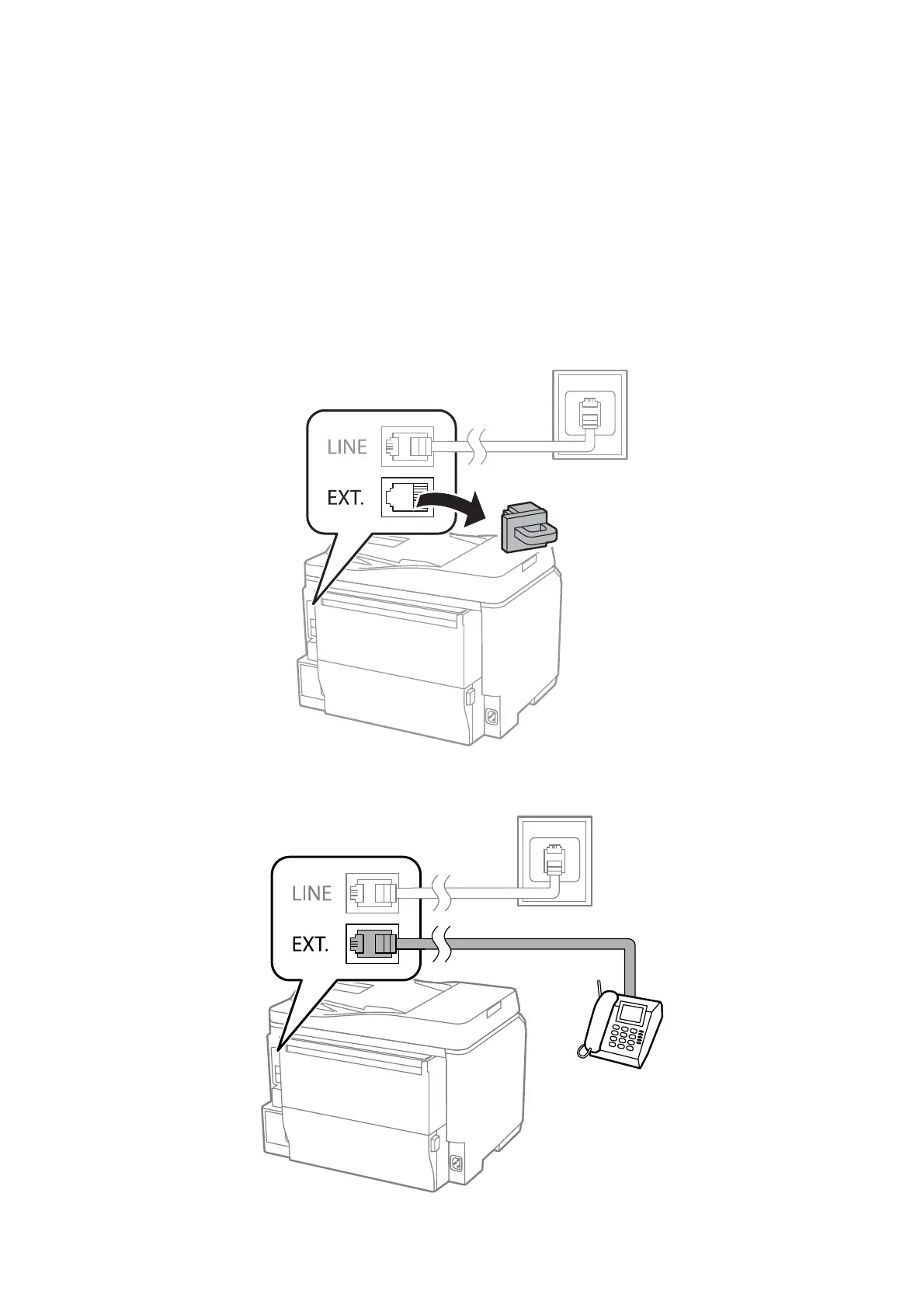 When using the printer and your telephone on a single phone line, connect the telephone to the printer.