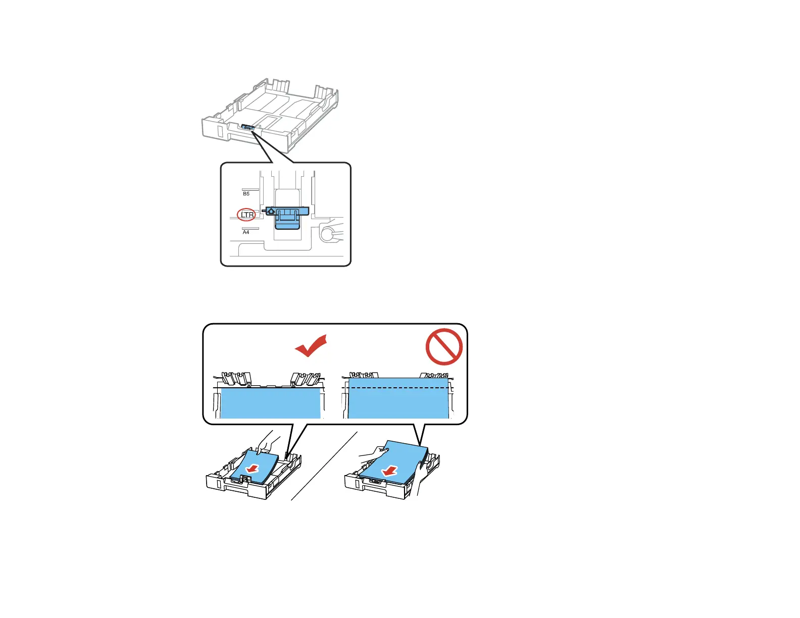 Note: Make sure the paper is loaded against the edge guide and not sticking out from the end of the