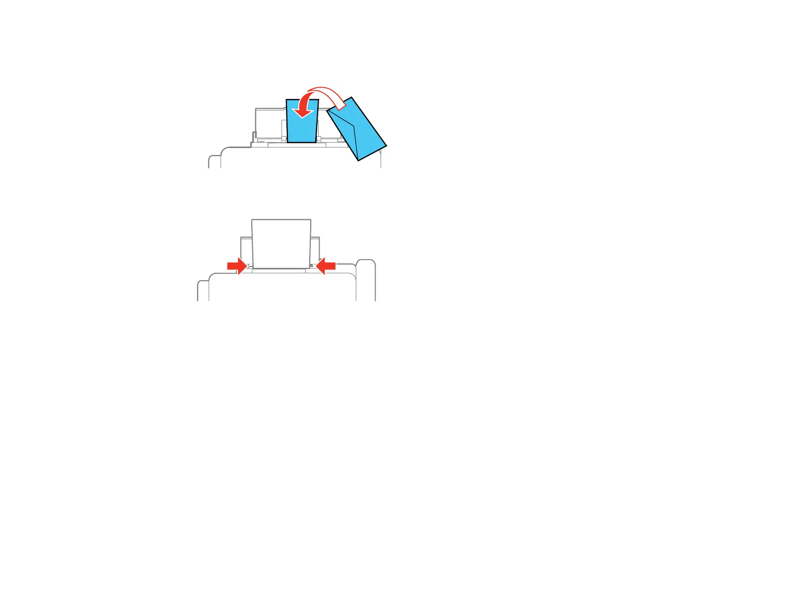 • Load envelopes short edge first, with the flap facing down and the flap edge to the left, in the