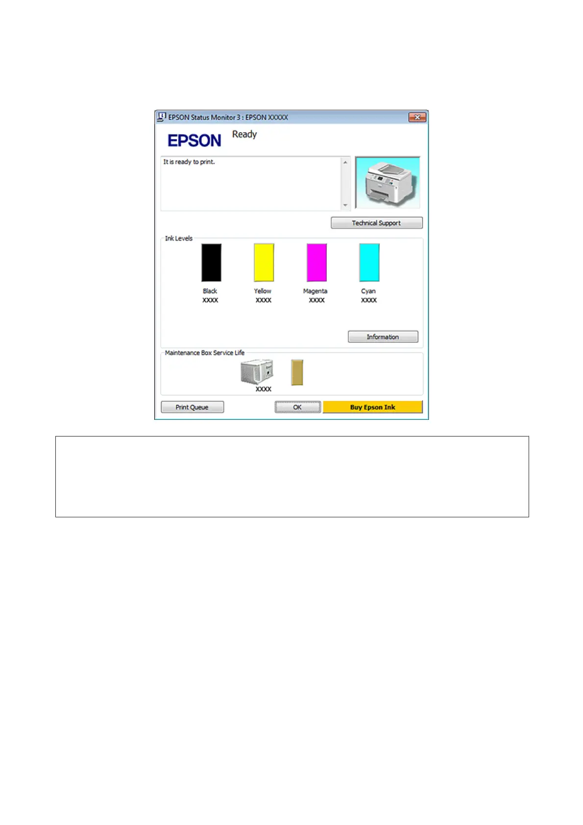 EPSON Status Monitor 3 provides a graphic display of the maintenance box status.