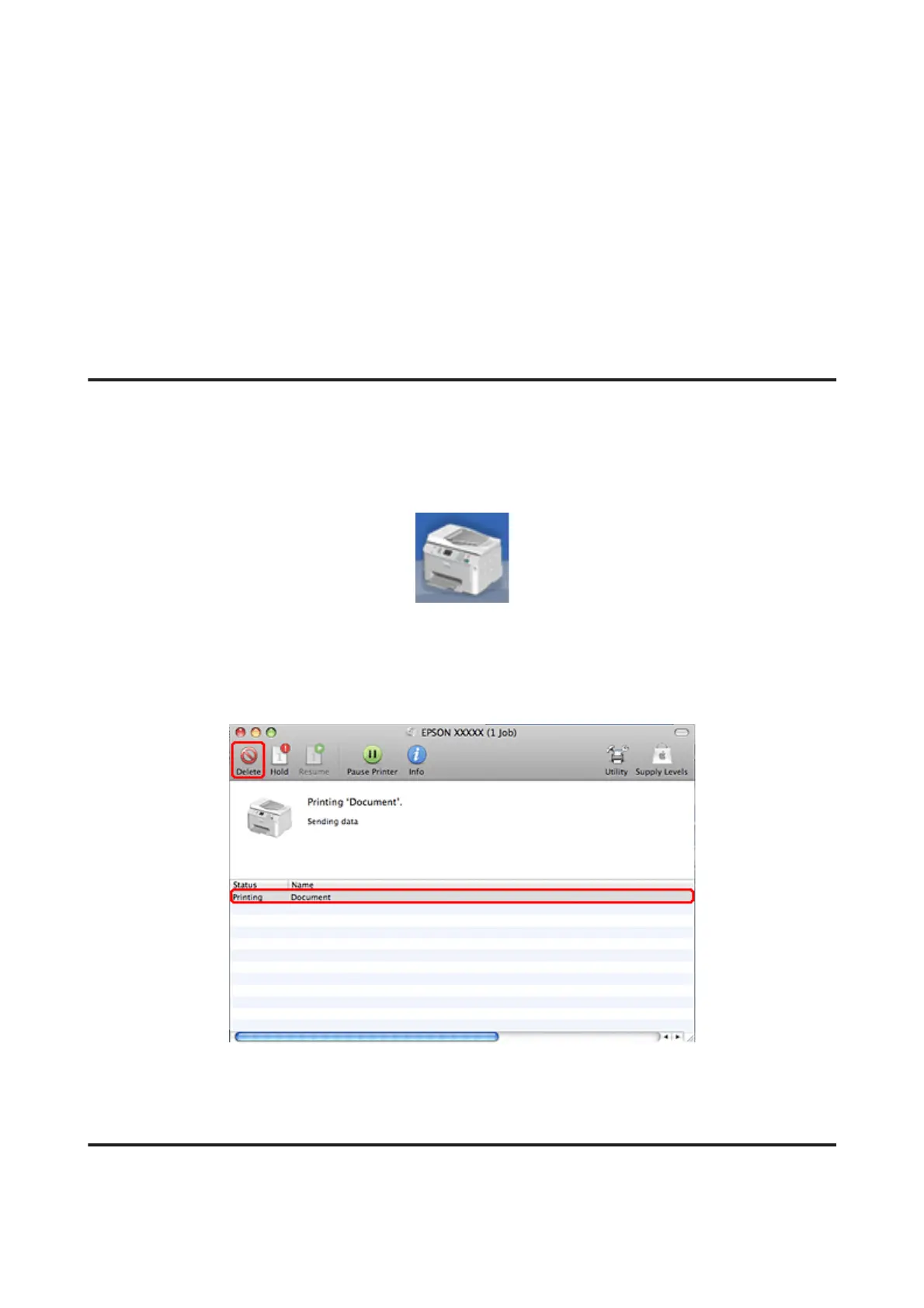 Click the Delete button to cancel the print job.