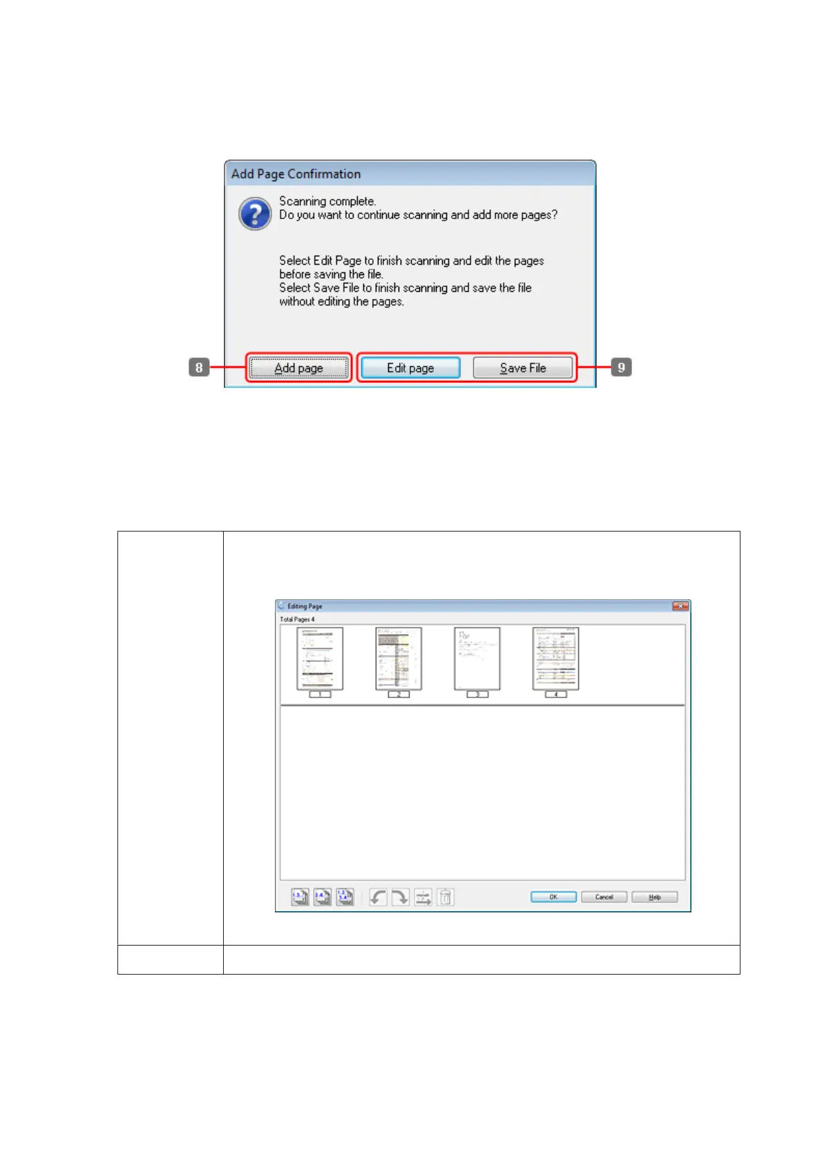 bottom of the Editing Page window to select, rotate, reorder, and delete pages.