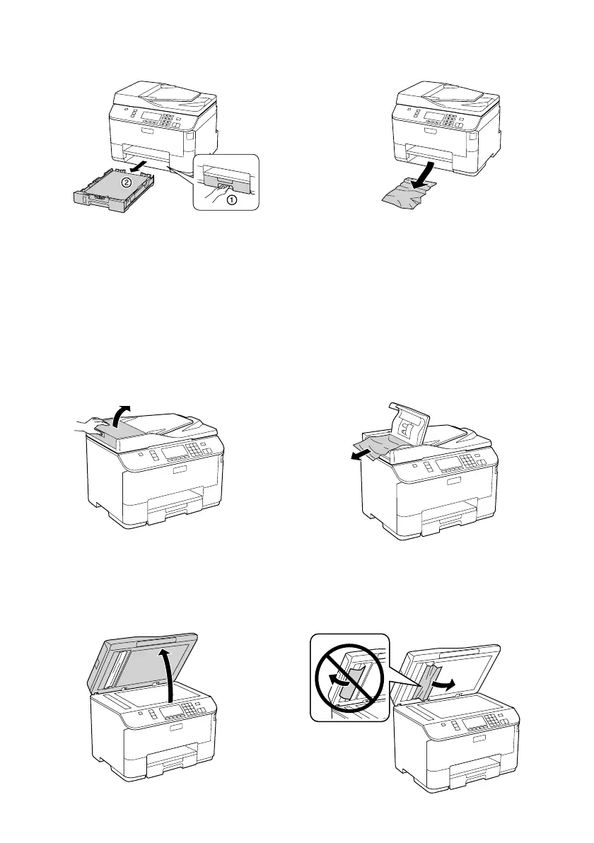 1. If documents have jammed, open the ADF cover and remove any jammed pages.