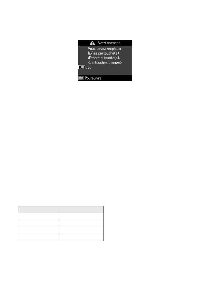 Lorsqu’une cartouche est épuisée, un message s’affiche sur l’écran ACL de l’imprimante :