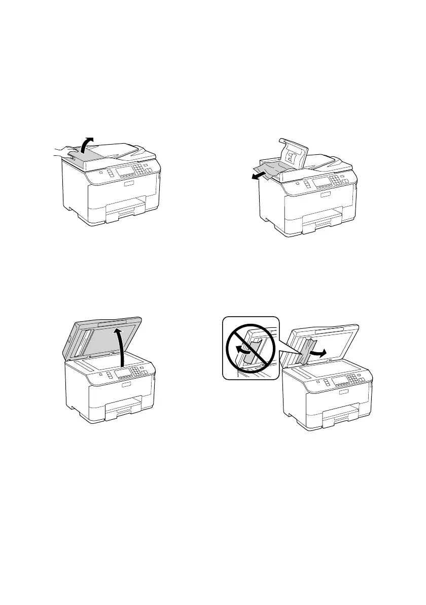 1. Si les documents sont coincés, ouvrez le chargeur automatique de documents et retirez