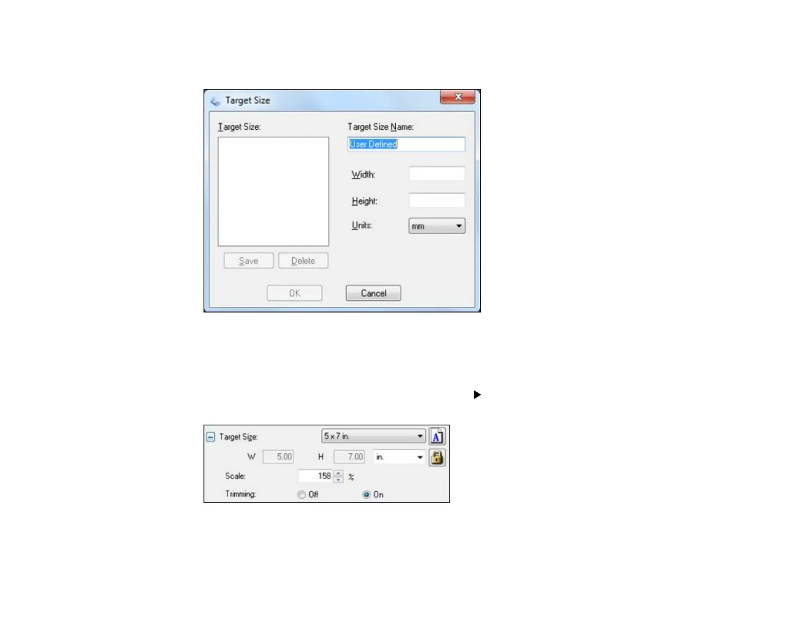 4. To create a scanned image size that is not available in the Target Size list, click the Customize