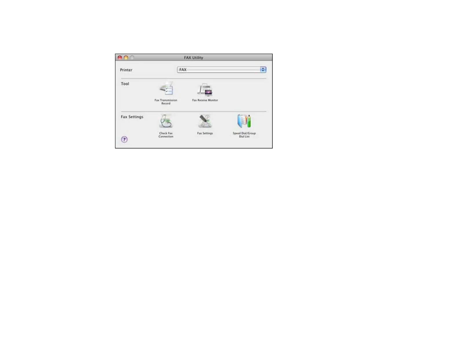 Note: For detailed information, select the Fax Utility ? icon.