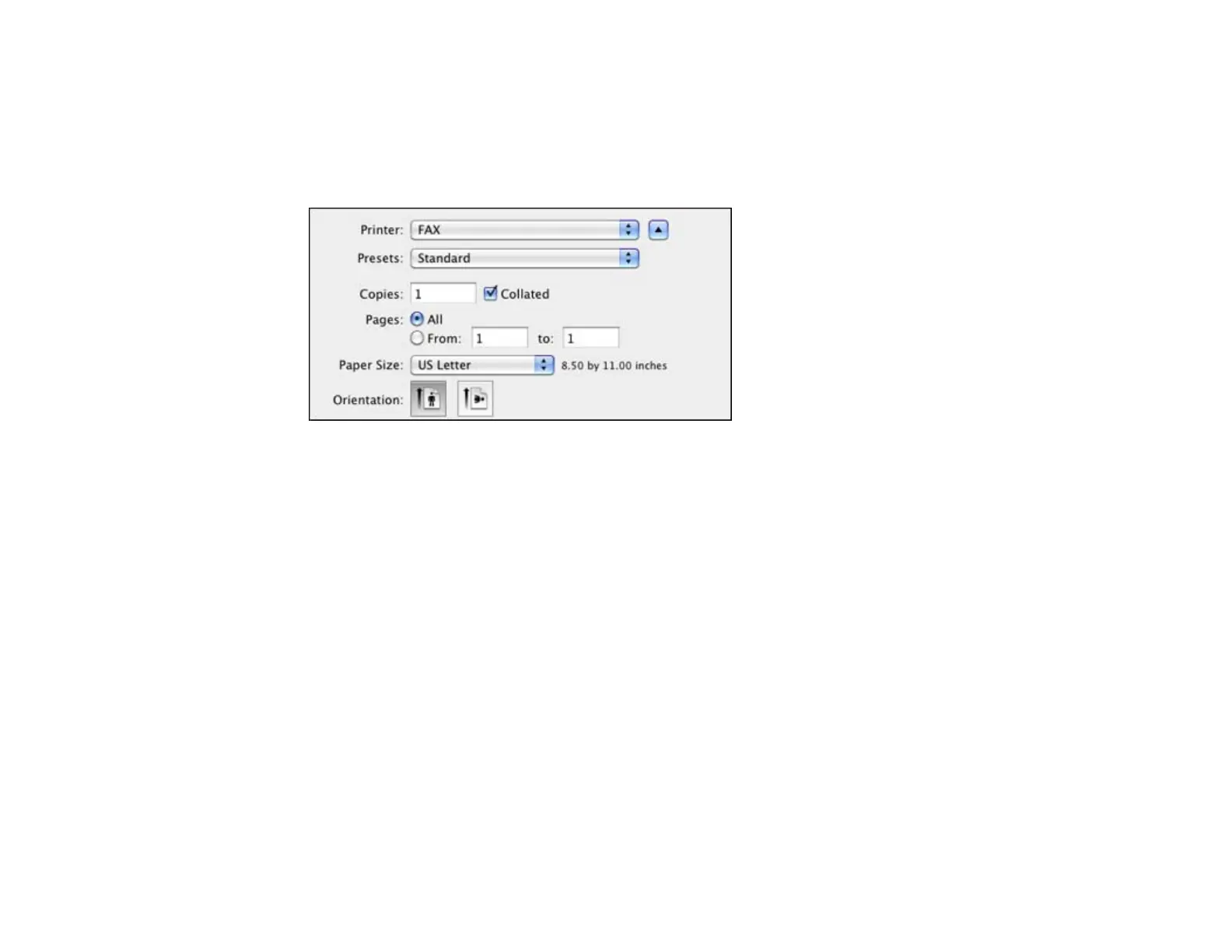 3. Select your product FAX option as the Printer setting.