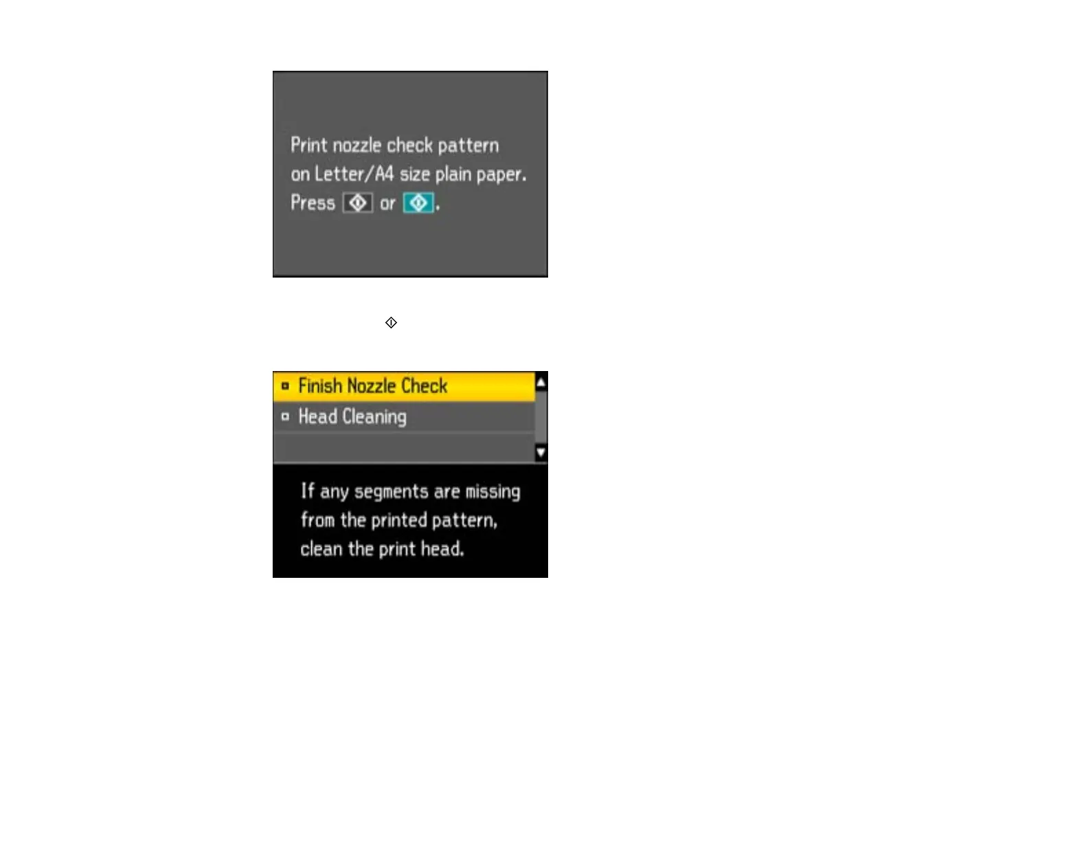 After the nozzle pattern prints, you see this screen: