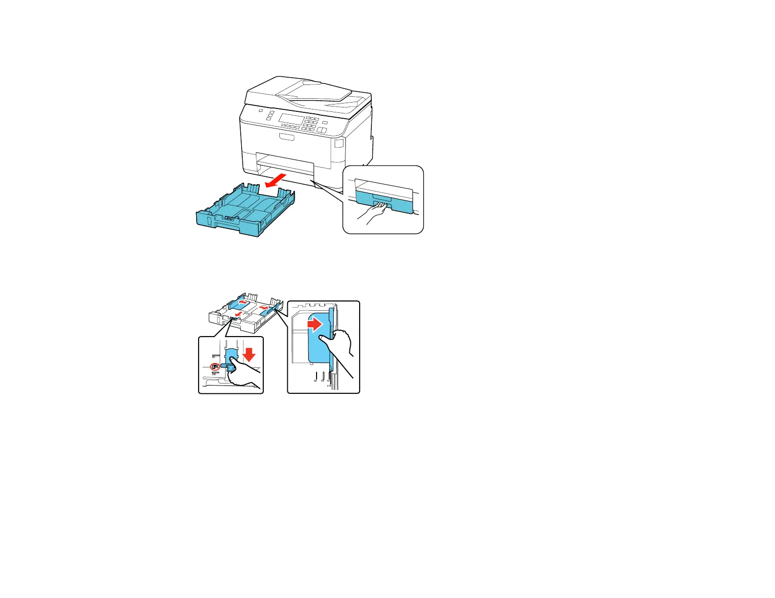 Note: If you are using legal-size paper, squeeze the tab to extend the paper cassette.