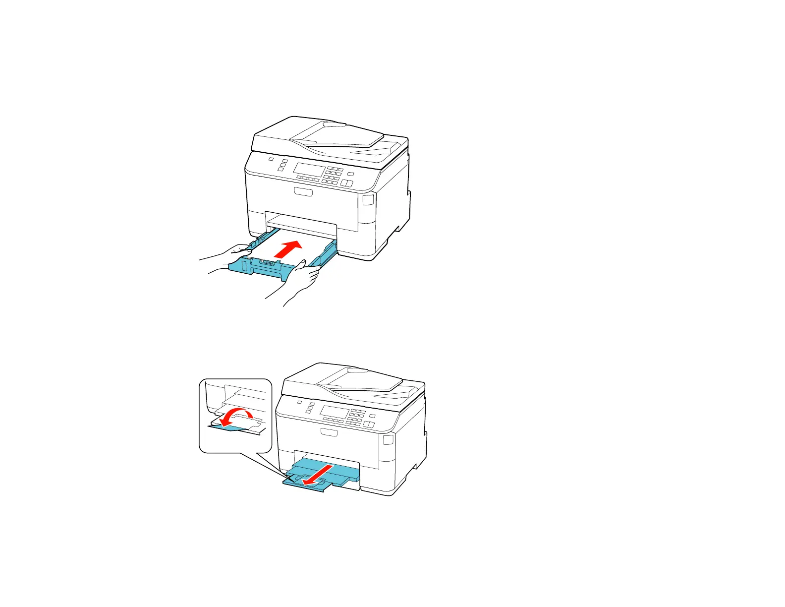 Caution: To prevent paper feeding problems, make sure you do not load too much paper in the