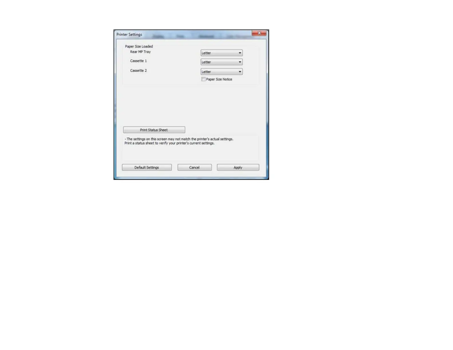 Note: If you turn on Paper Size Notice, the printer will prevent you from printing with the wrong