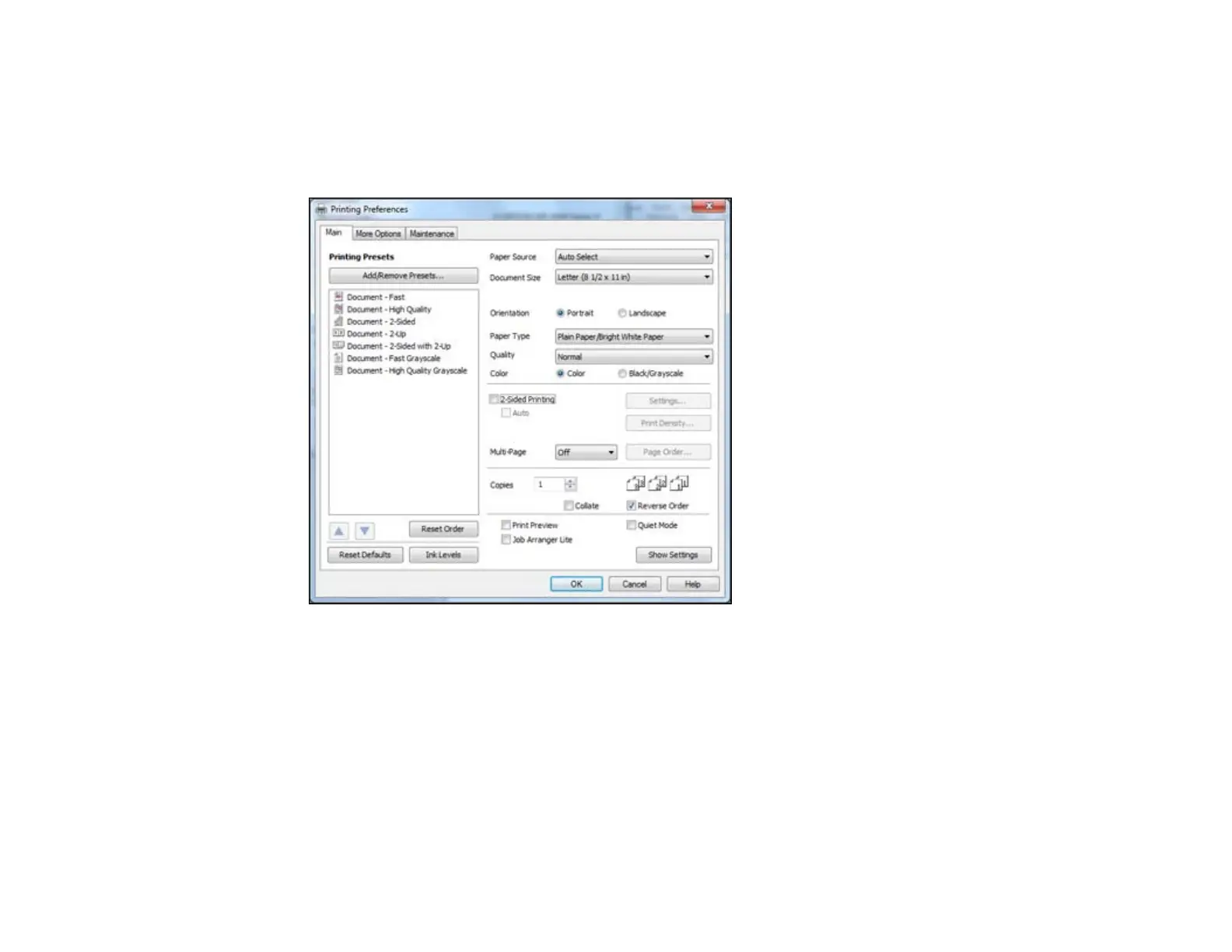 Note: You may also need to select Properties or Preferences to view your print settings.