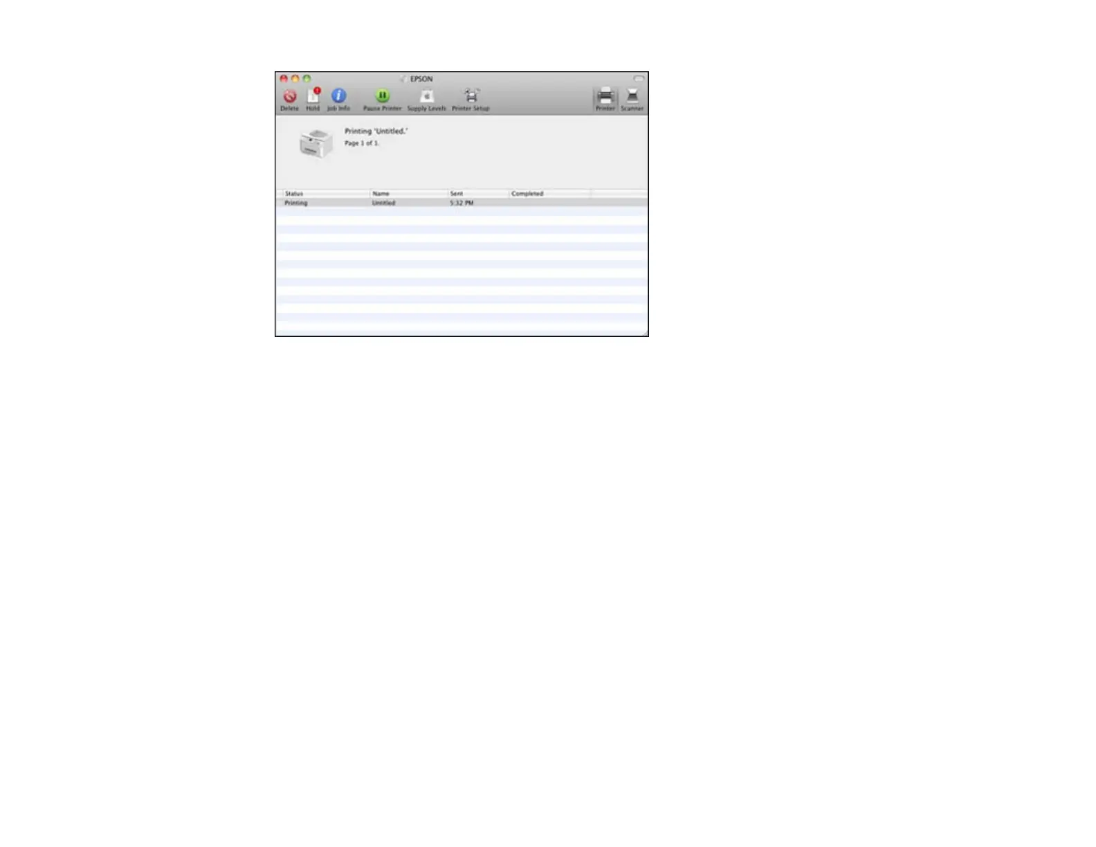 • To pause printing, click the print job and click Hold. To resume printing, click the print job marked