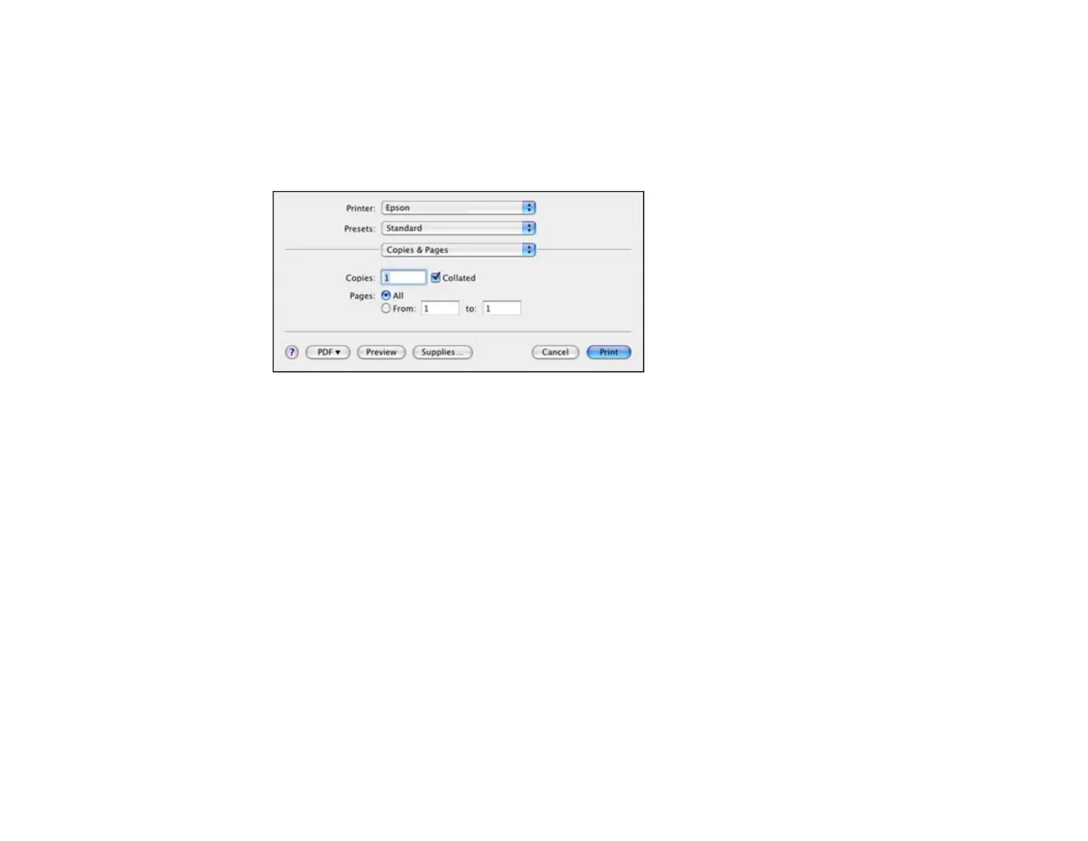 3. Select the Copies and Pages settings as necessary.