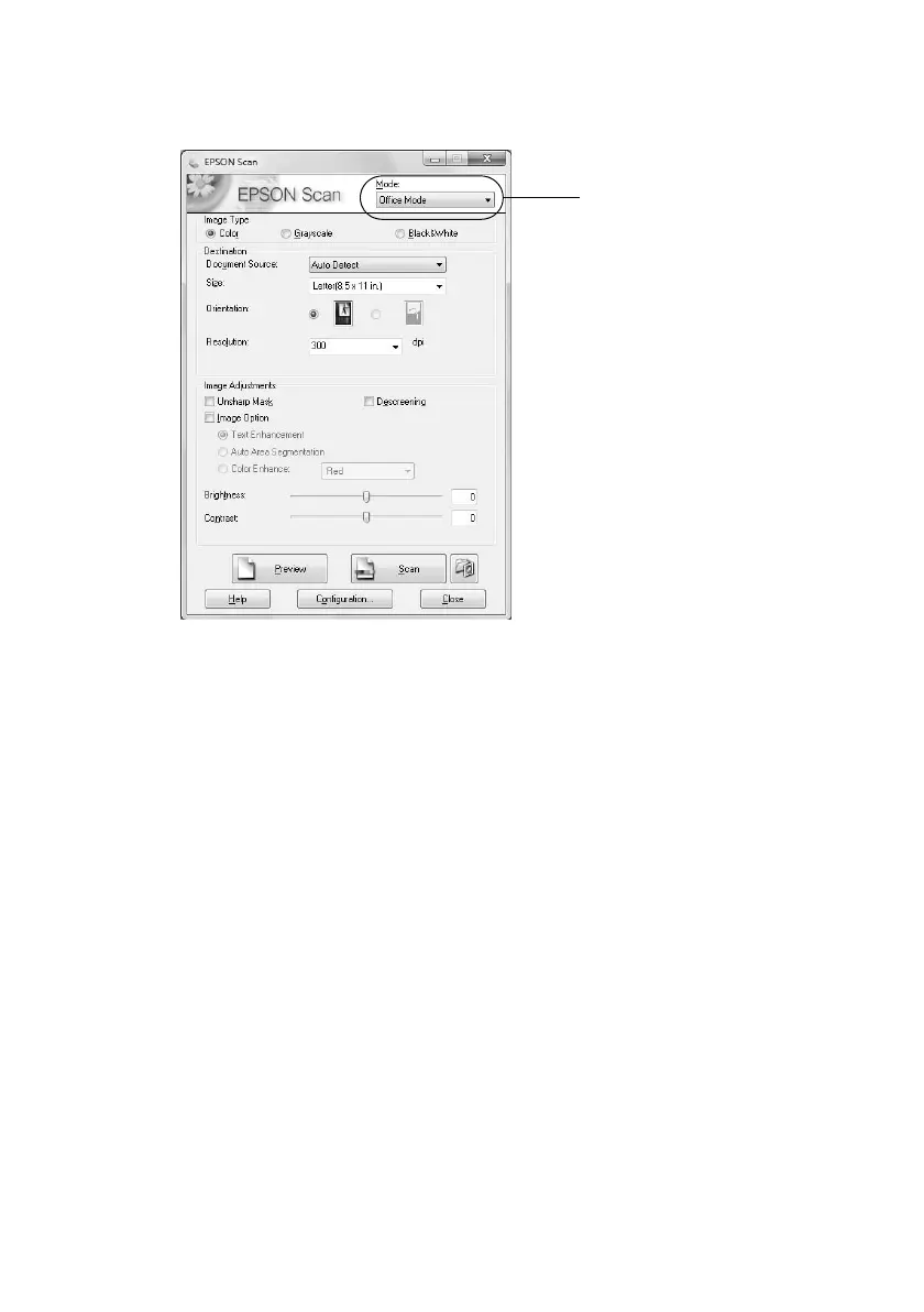 3. Epson Scan opens in Office Mode the first time you use it. (You can change the scan