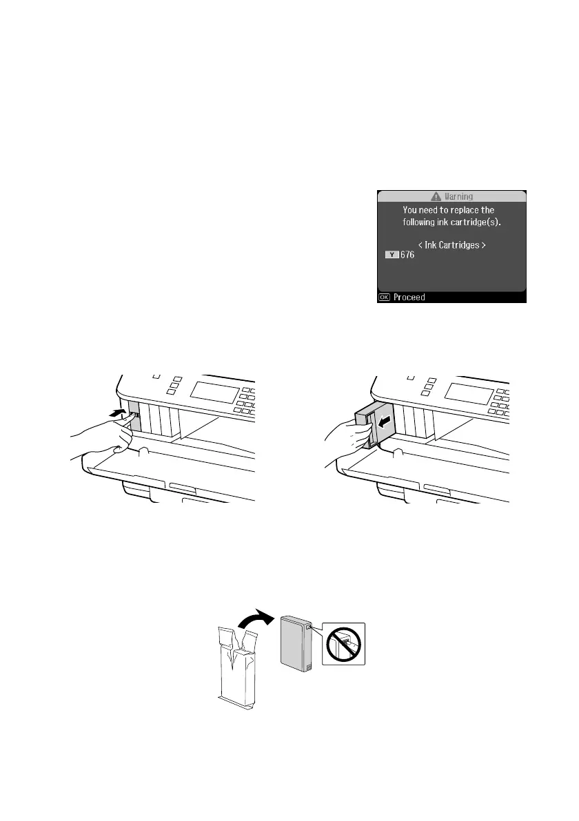 2. If an ink cartridge is expended, you see a message on