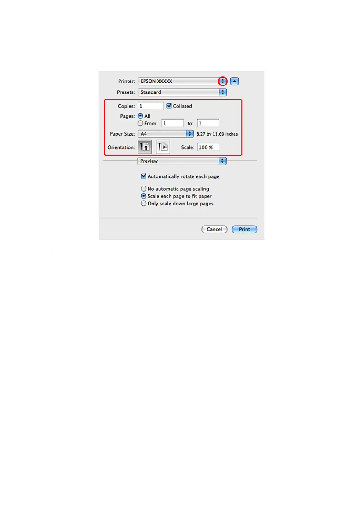 ❏ Depending on your application, you may not be able to select some of the items in this dialog. If so, click Page