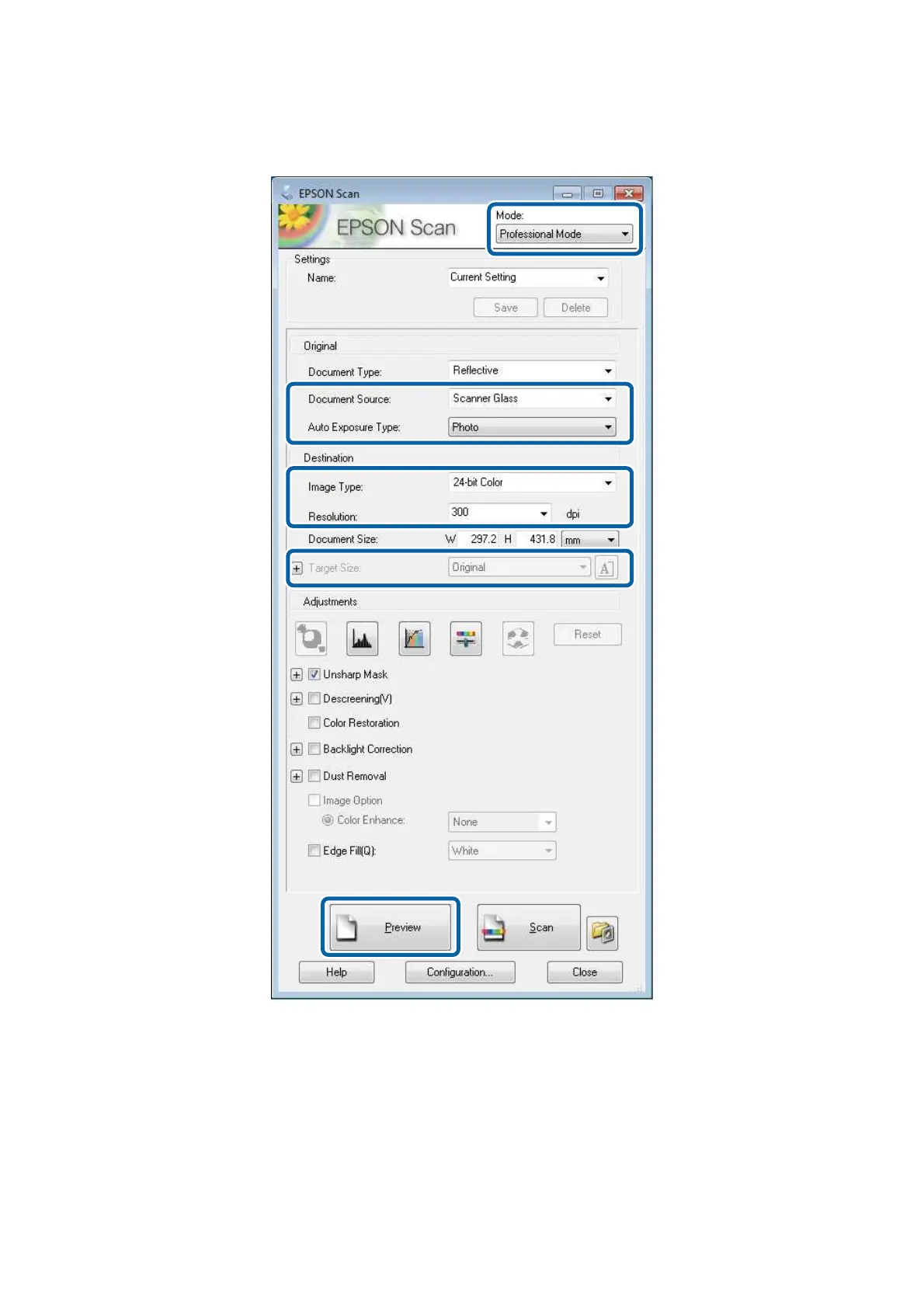 ❏ Auto Exposure Type: Select the exposure type that suits your original.