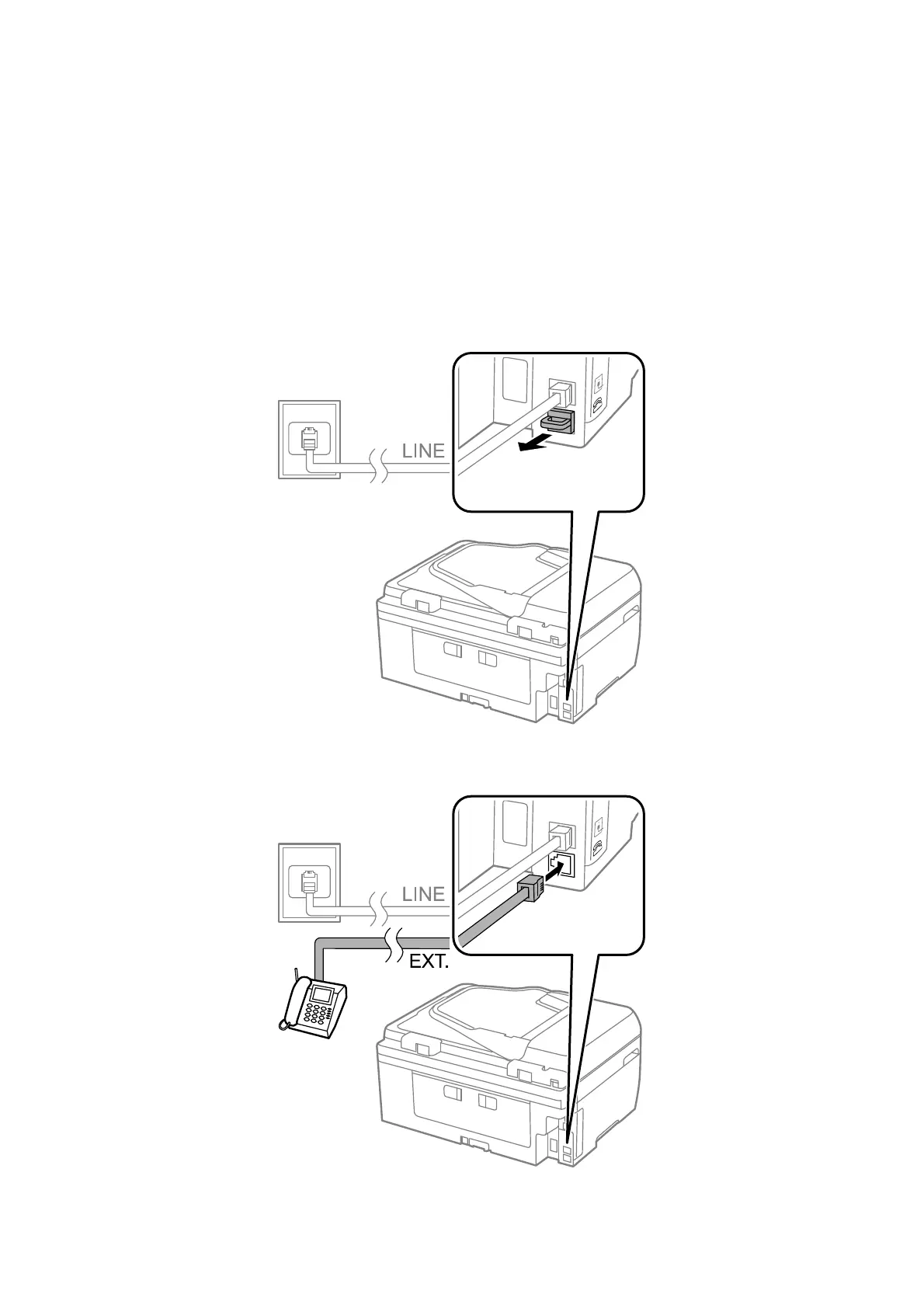 When using the printer and your telephone on a single phone line, connect the telephone to the printer.