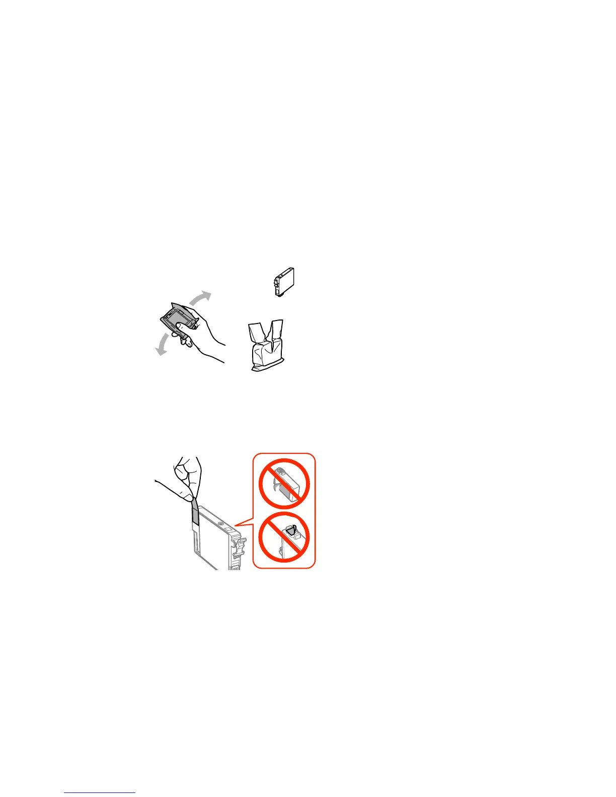 Caution: Do not remove any labels or seals, or ink will leak. Do not touch the green chip on the