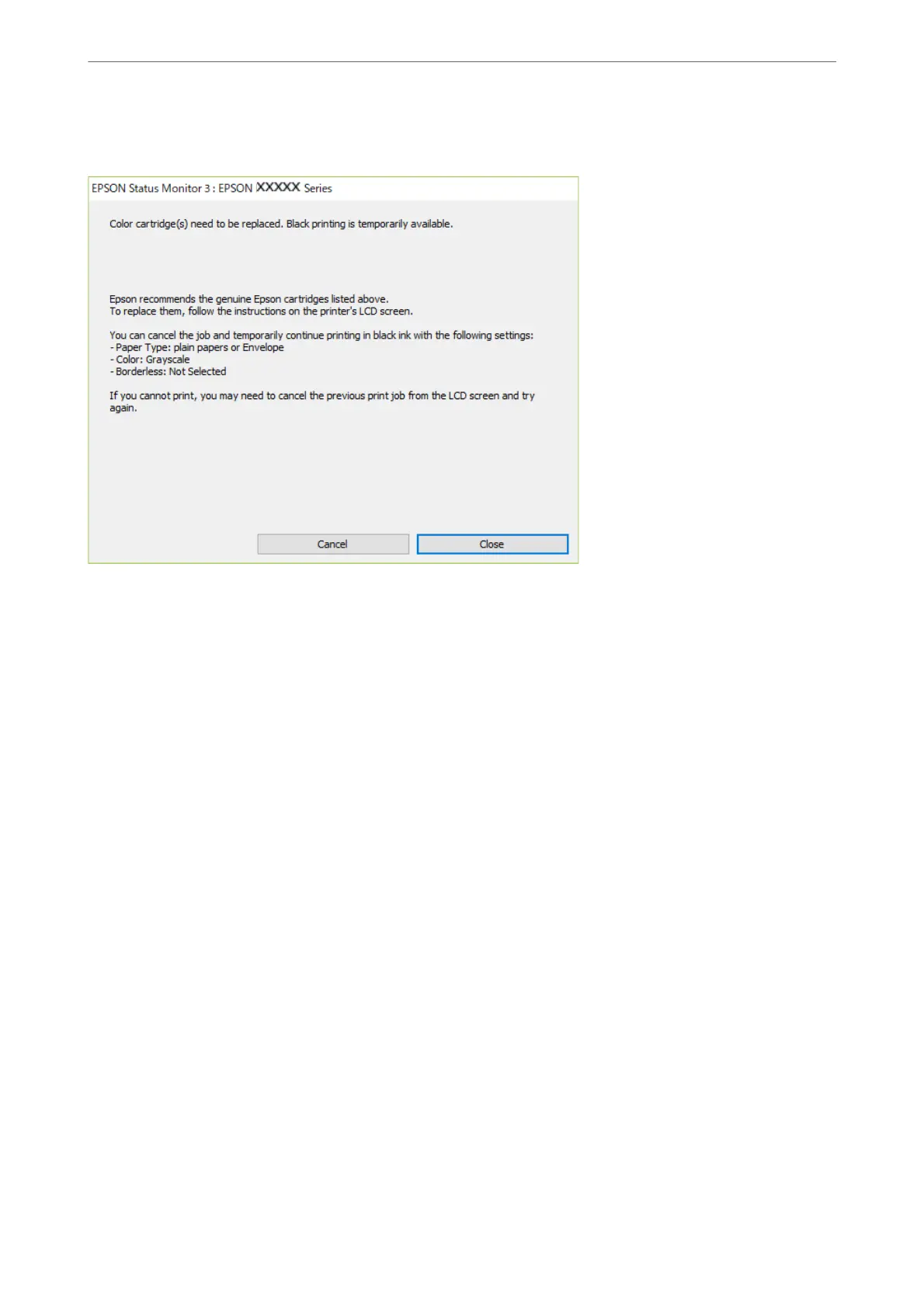 ❏ When the following window is displayed, cancel printing. And then, printing again.
