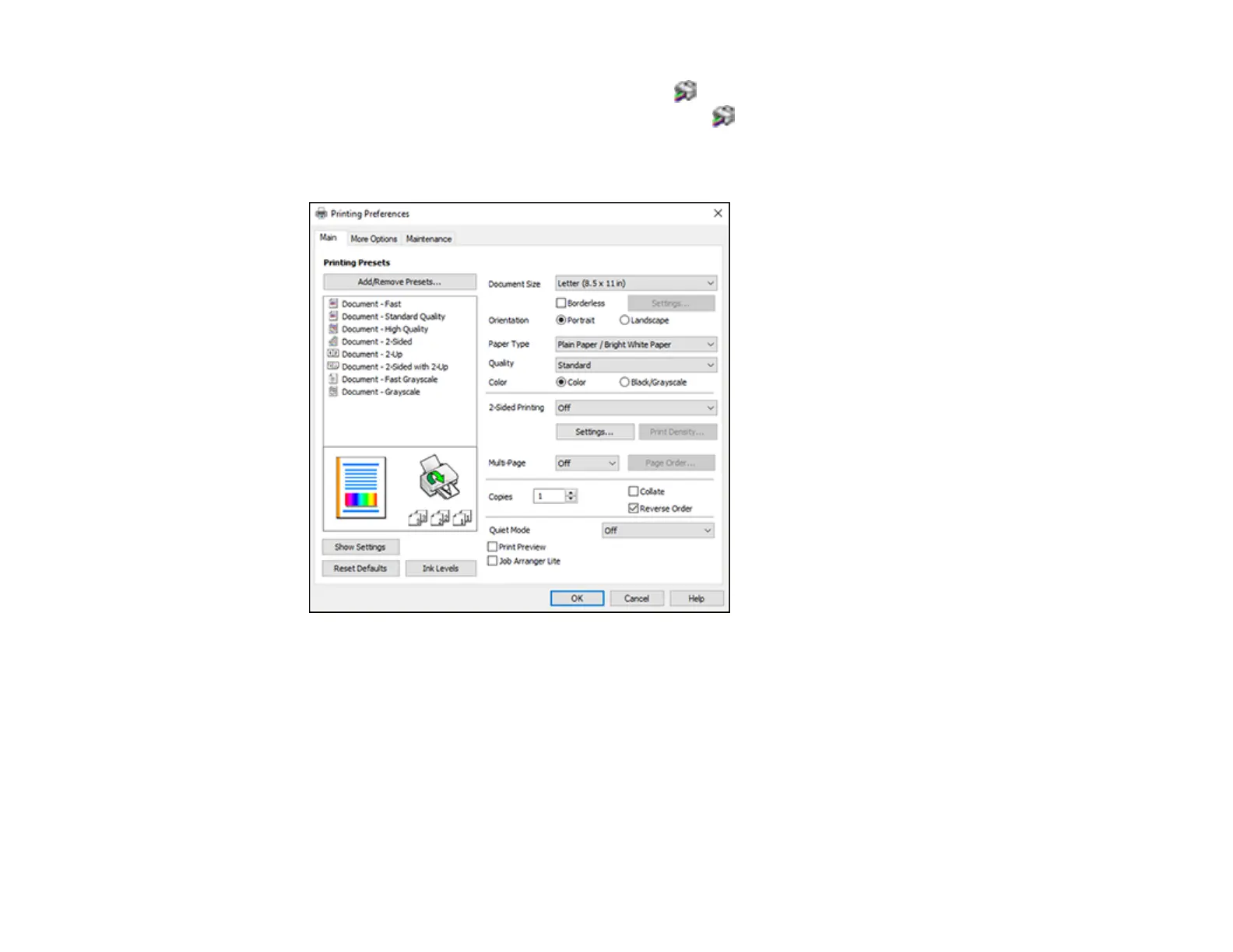 3. Select the print settings you want to use as defaults in all your Windows programs.