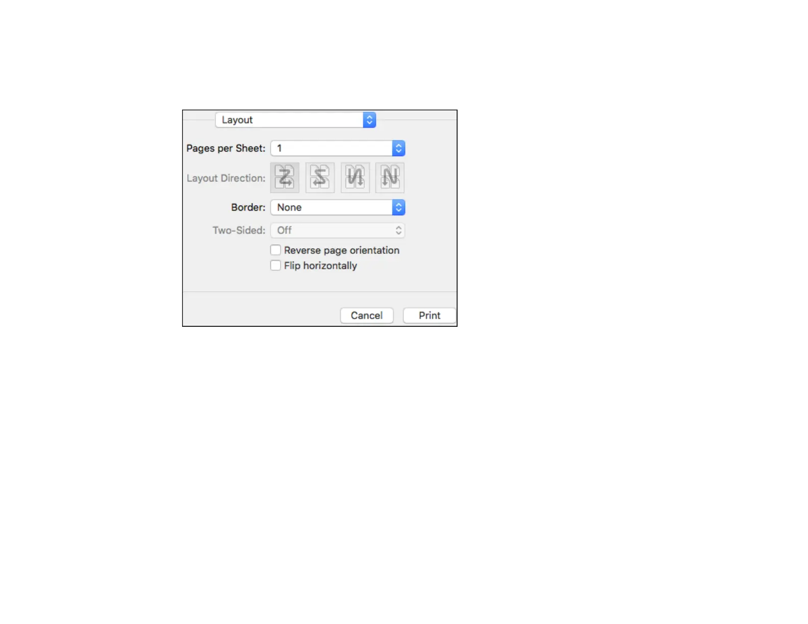 pop-up menu. To arrange the print order of the pages, select a Layout Direction setting.
