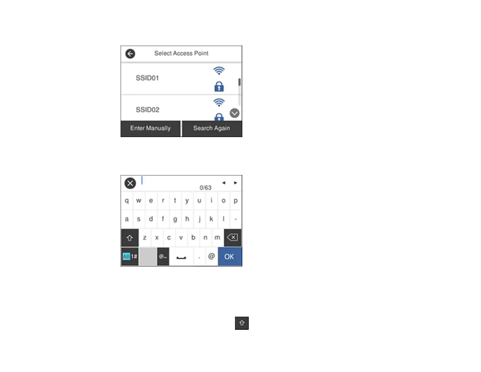 you are entering the name manually, use the displayed keyboard to enter your network name.