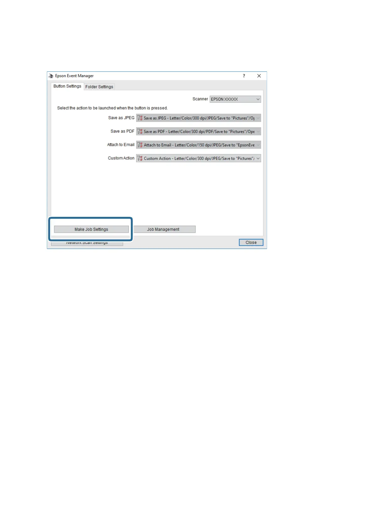 3. Click Make Job Settings.
