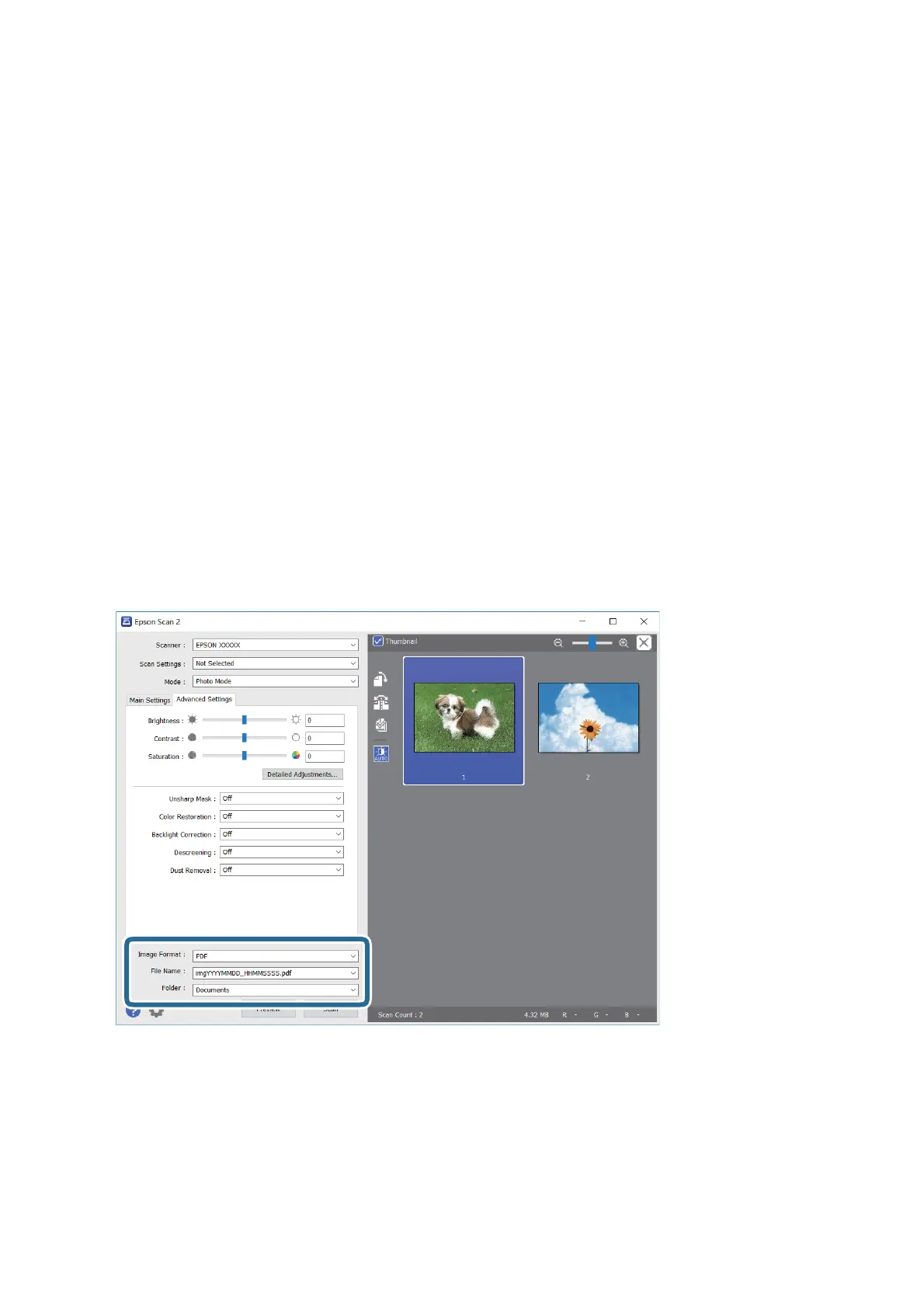 adjustment items, you can adjust the quality of scanned images all together by selecting multiple thumbnails.
