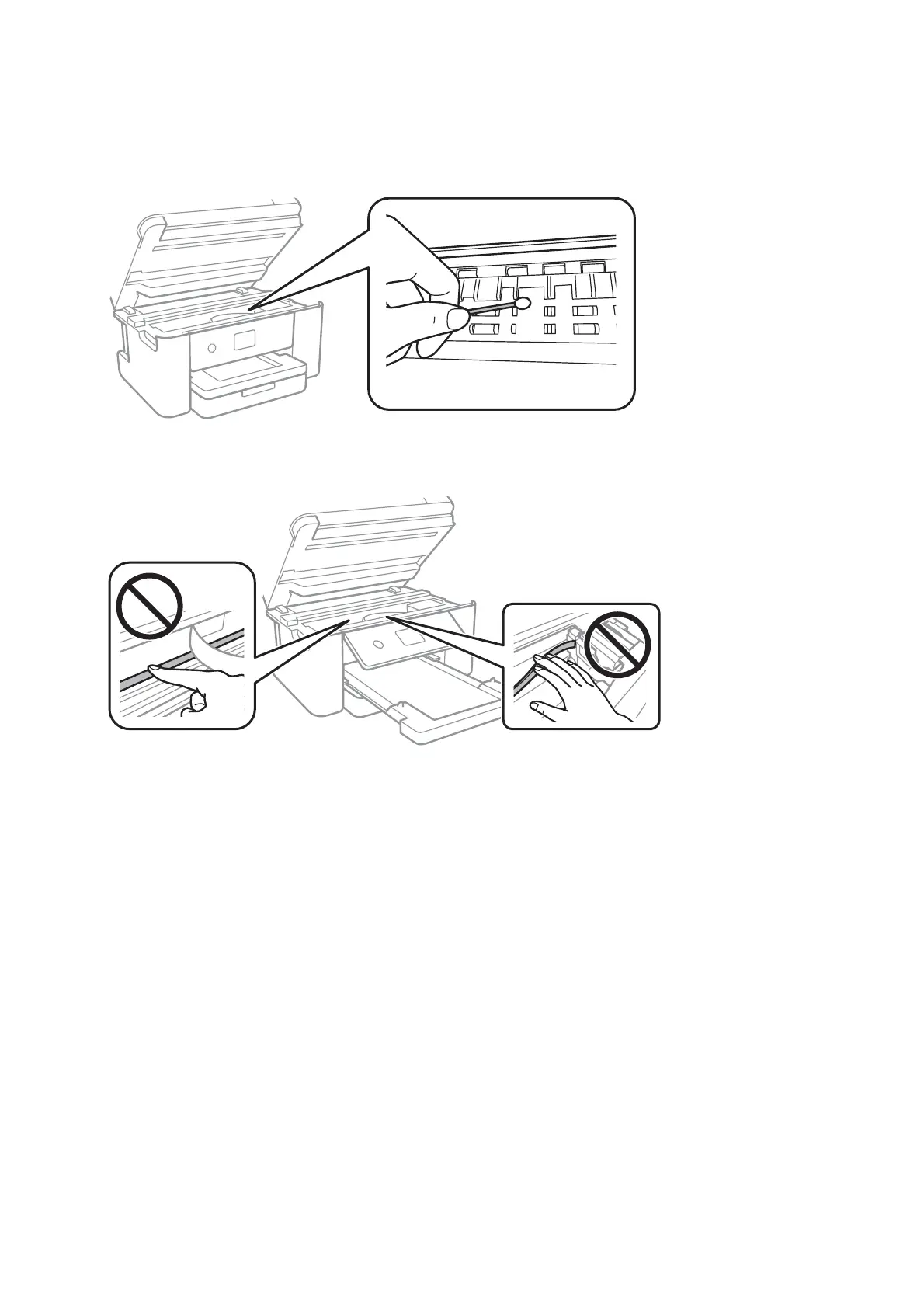 ❏ When the problem cannot be cleared aer cleaning the paper path, the part inside the printer that is shown in