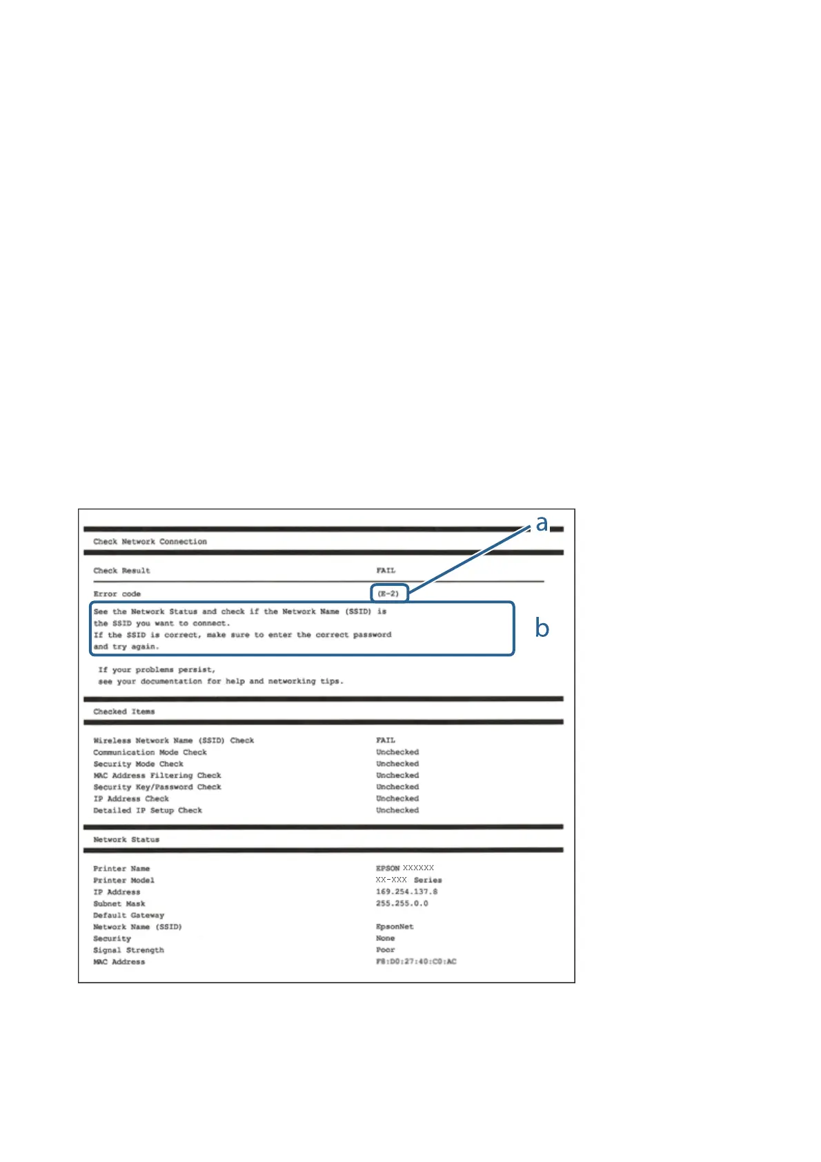 If an error has occurred, check the network connection report, and then follow the printed solutions.