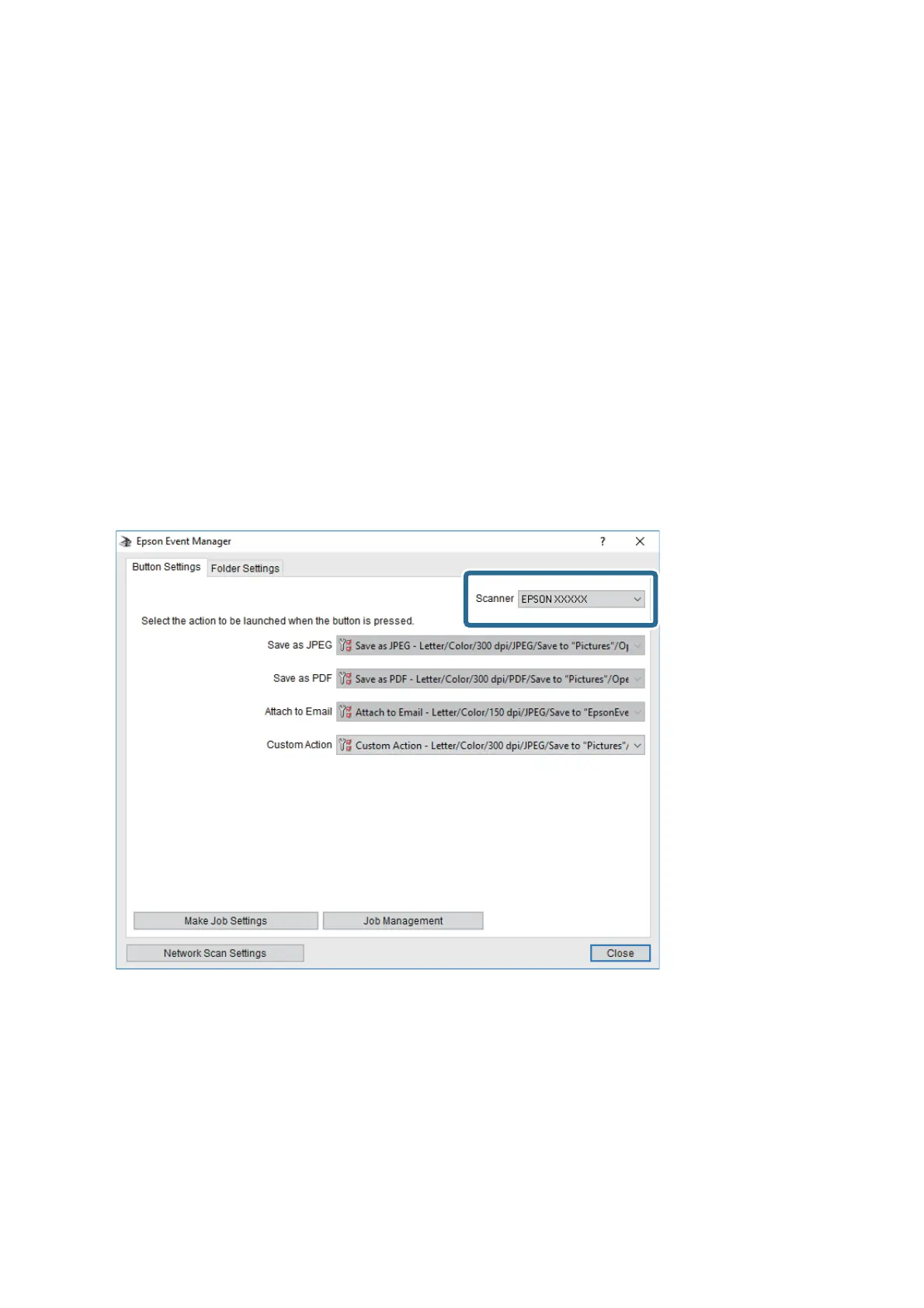 You can set the scan settings for Follow custom setting in Epson Event Manager.