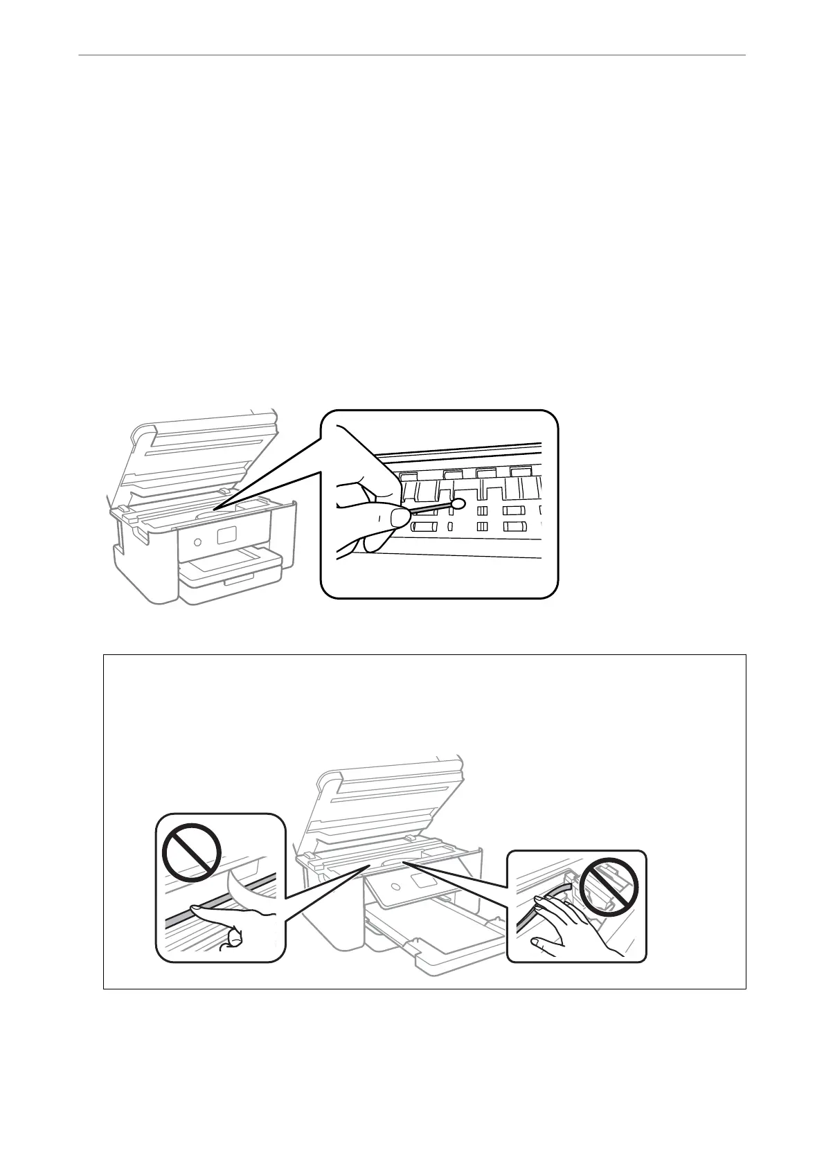 ❏ Do not touch the parts shown in the following illustration. Doing so may cause a malfunction.