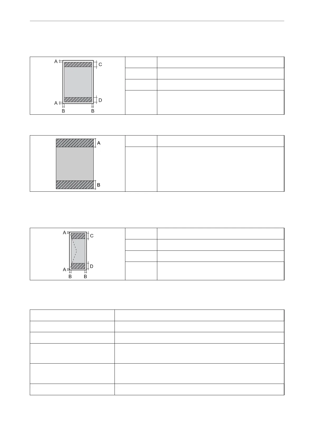 Print quality may decline in the shaded areas due to the printer's mechanism.