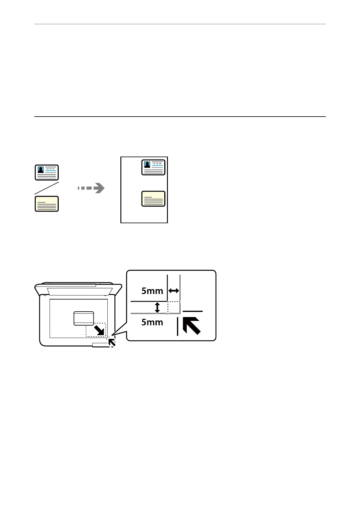 Place the original face-down and slide it to the corner mark. Place an ID card 5 mm away from the corner mark of