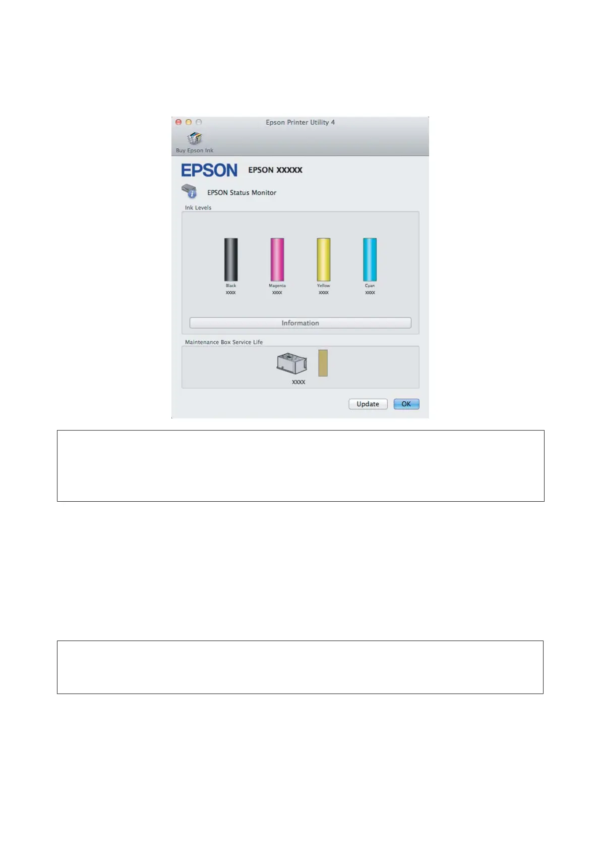 ❏ The graphic displays the ink cartridge status when EPSON Status Monitor was first opened. To update the ink cartridge
