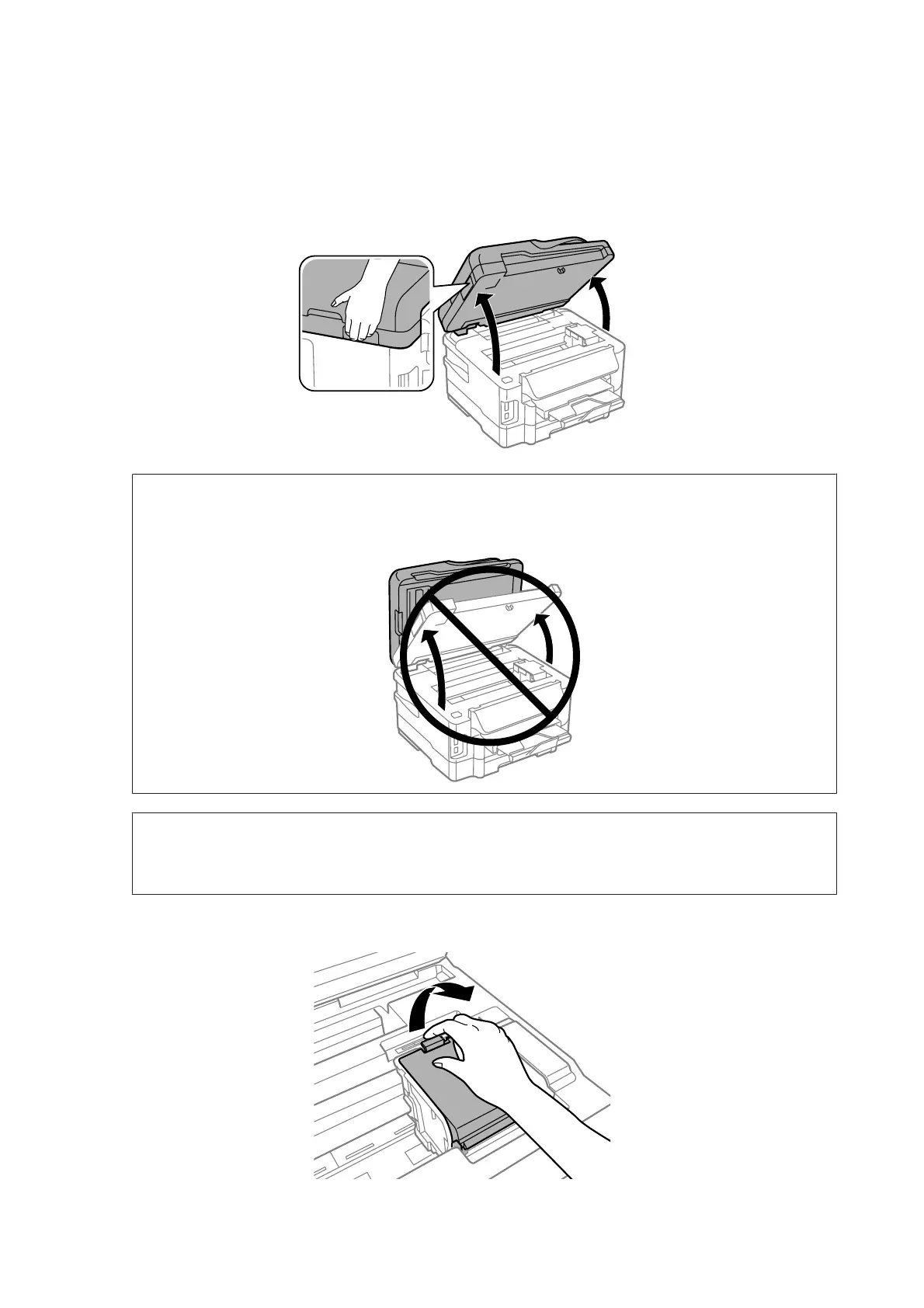 Open the scanner unit. The ink cartridge holder moves to the ink cartridge replacement position.