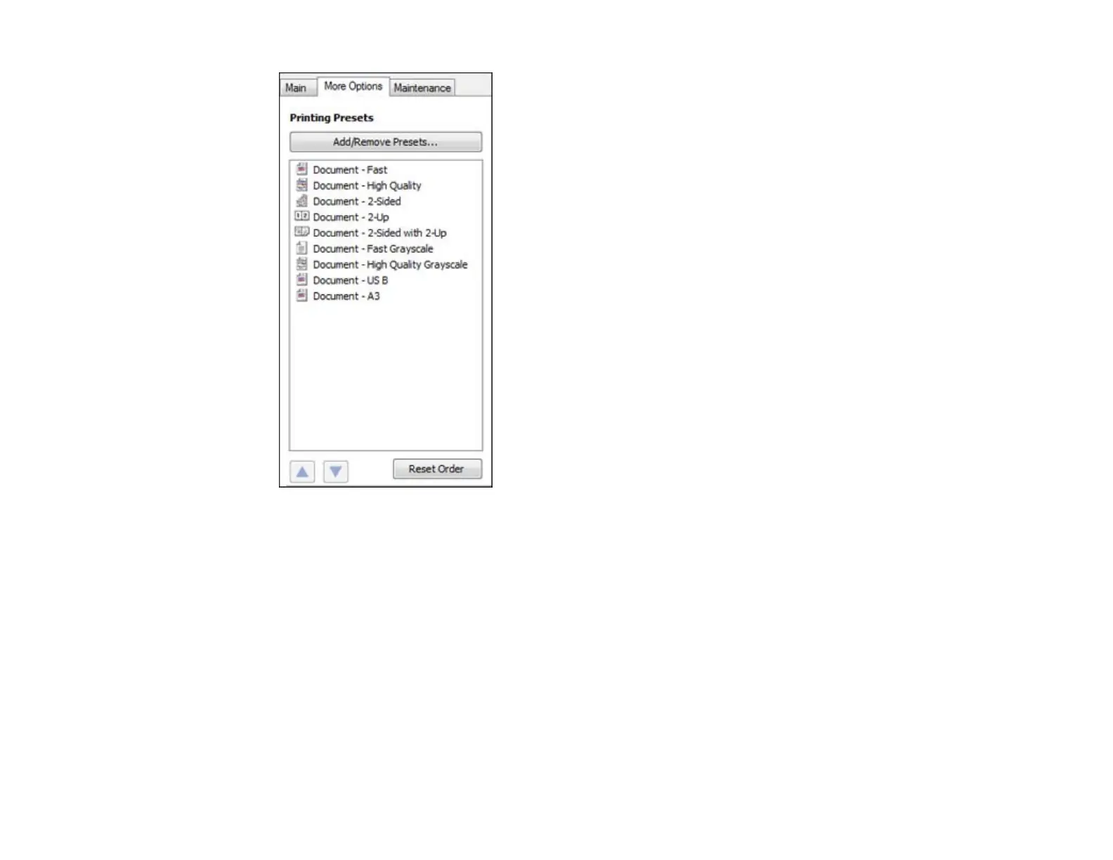 Note: Printing presets may vary depending on model.