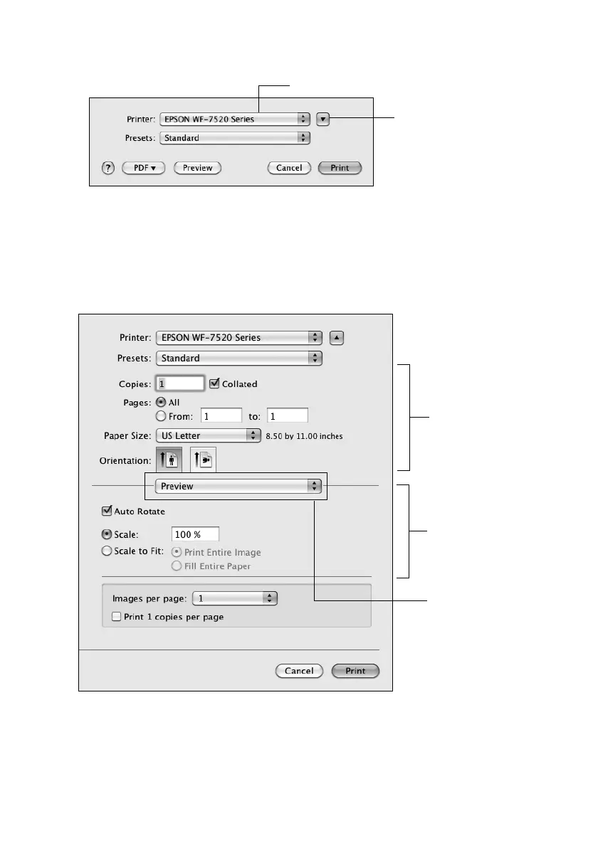 6. Choose any other printing options you may need from the pop-up menu. See the