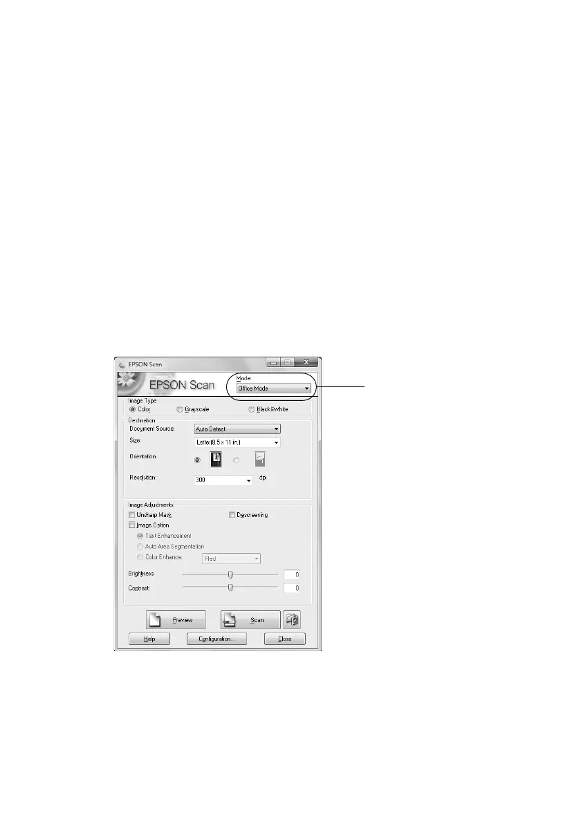 3. Epson Scan opens in Office Mode the first time you use it. (You can change the scan