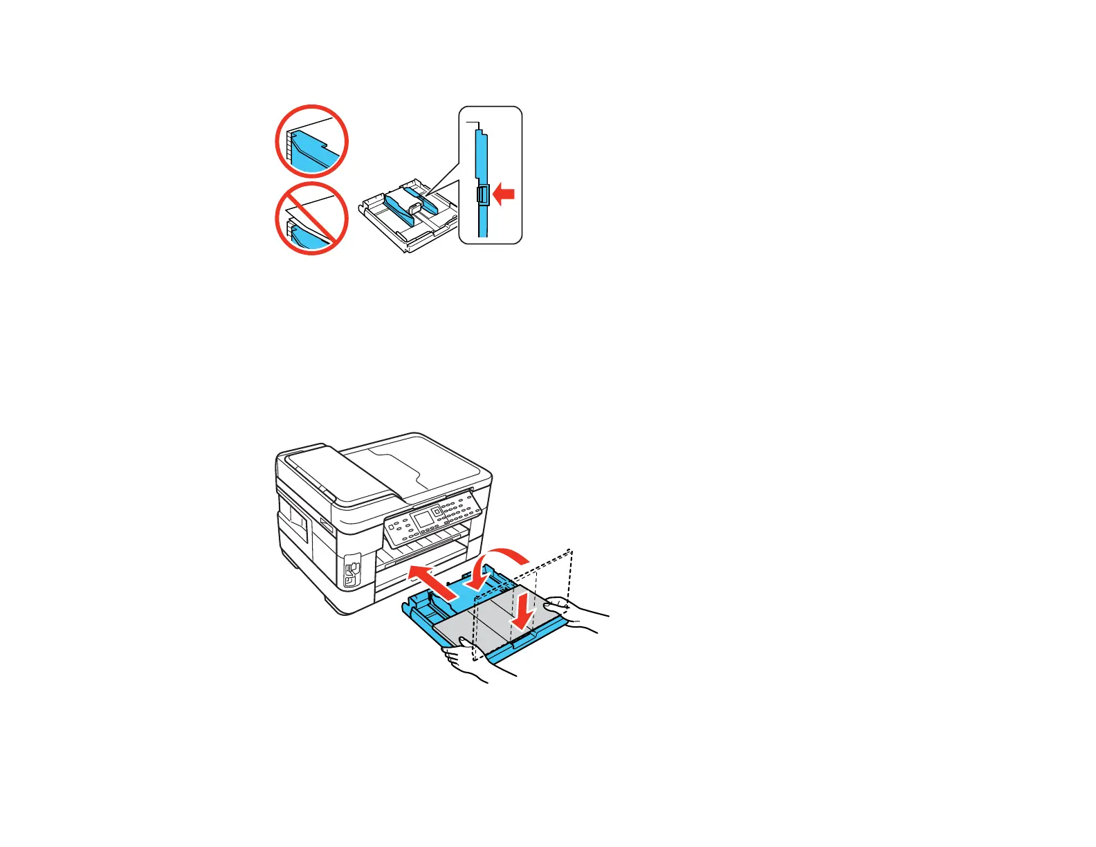Caution: To prevent paper feeding problems, make sure you do not load too much paper in the
