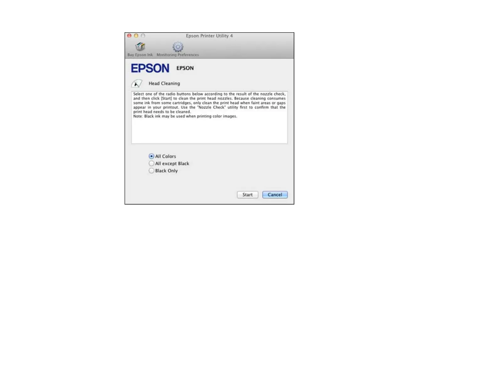 4. Select the cleaning cycle you want to run, based on the nozzle check pattern.