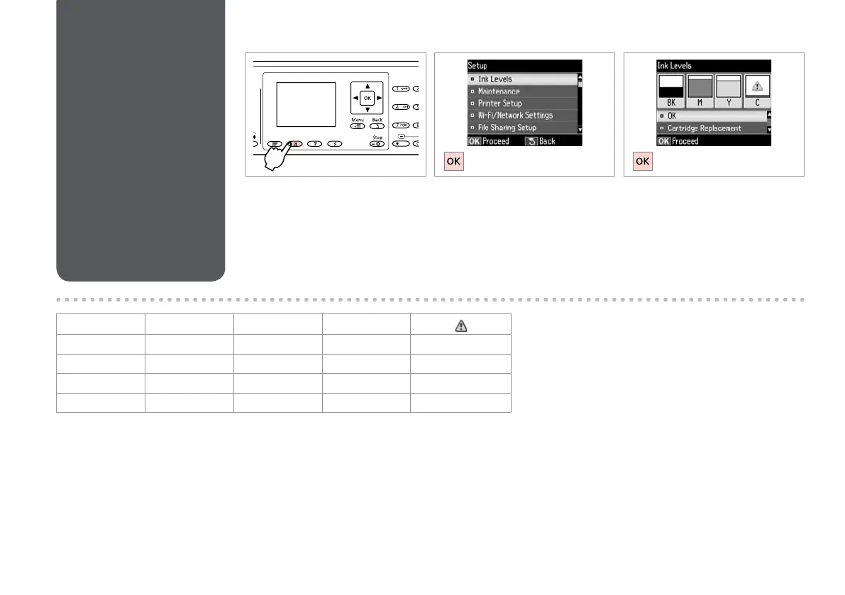 Noir Magenta Jaune Cyan Faible niveau encre.