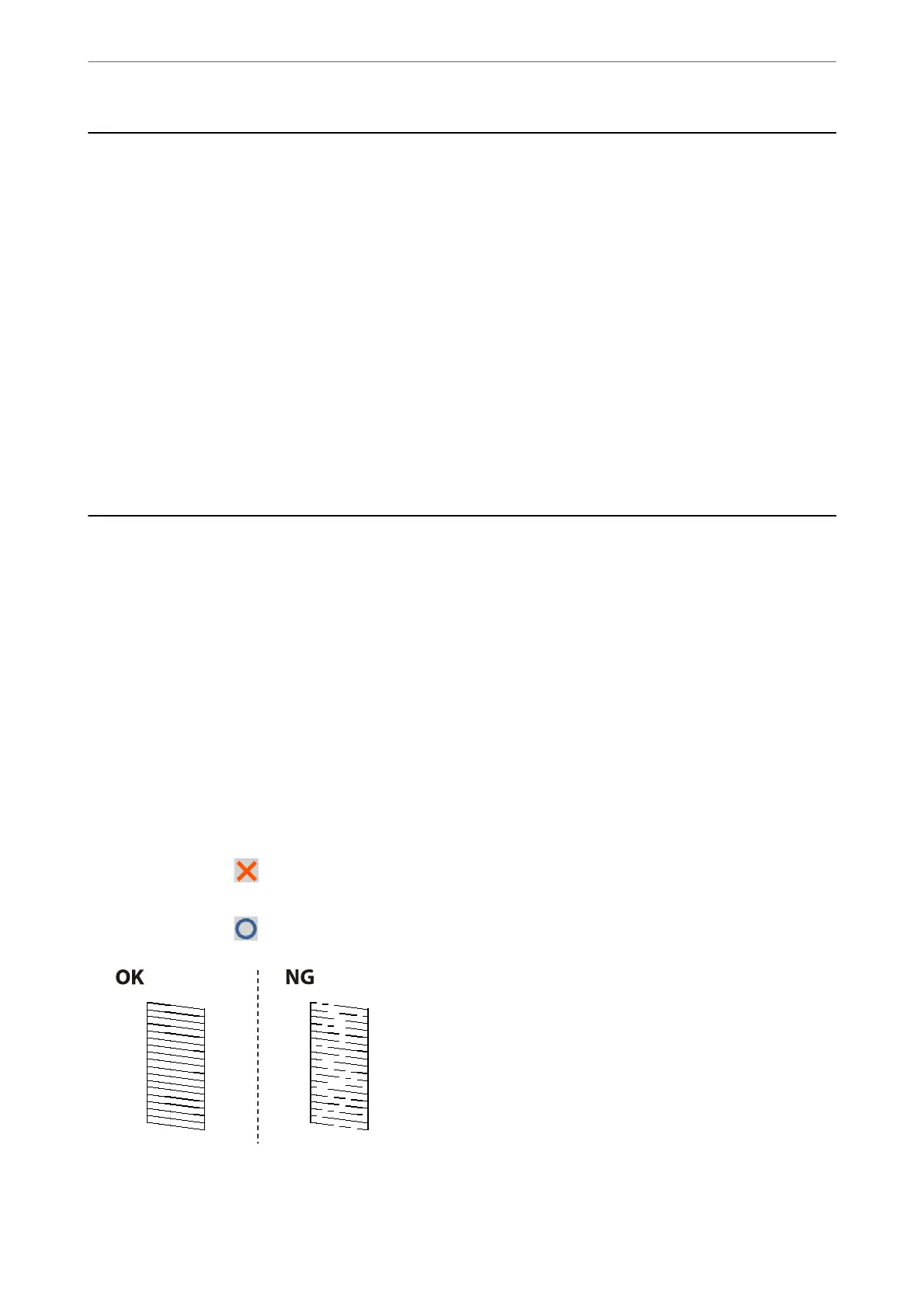 ❏ If there are broken lines or missing segments as shown in the "NG" pattern, the print head nozzles may be