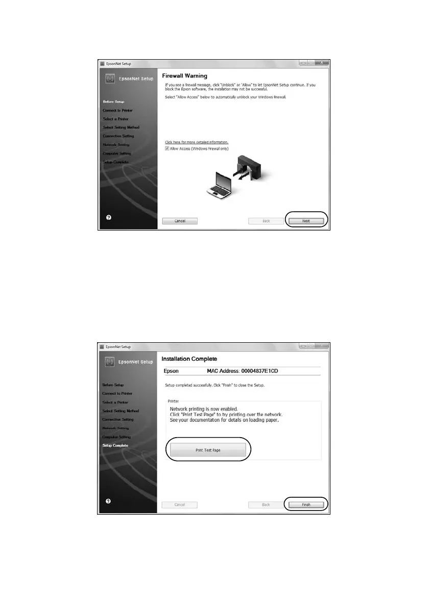 If you see a firewall alert message, click Unblock or Allow to let EpsonNet Setup